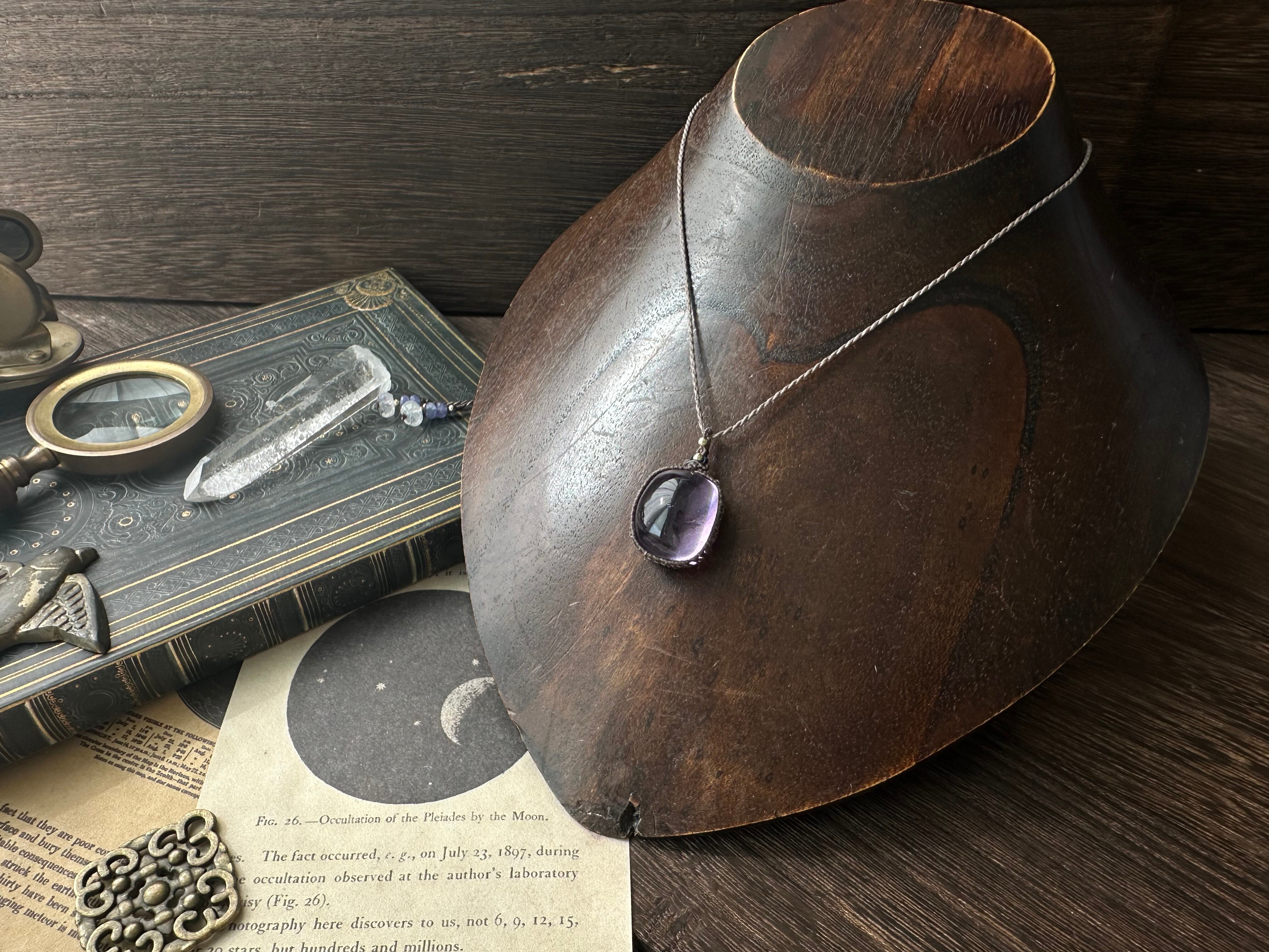 実はツートンカラーなブラジル産のアメジストでシンプルなペンダントを製作致しました。