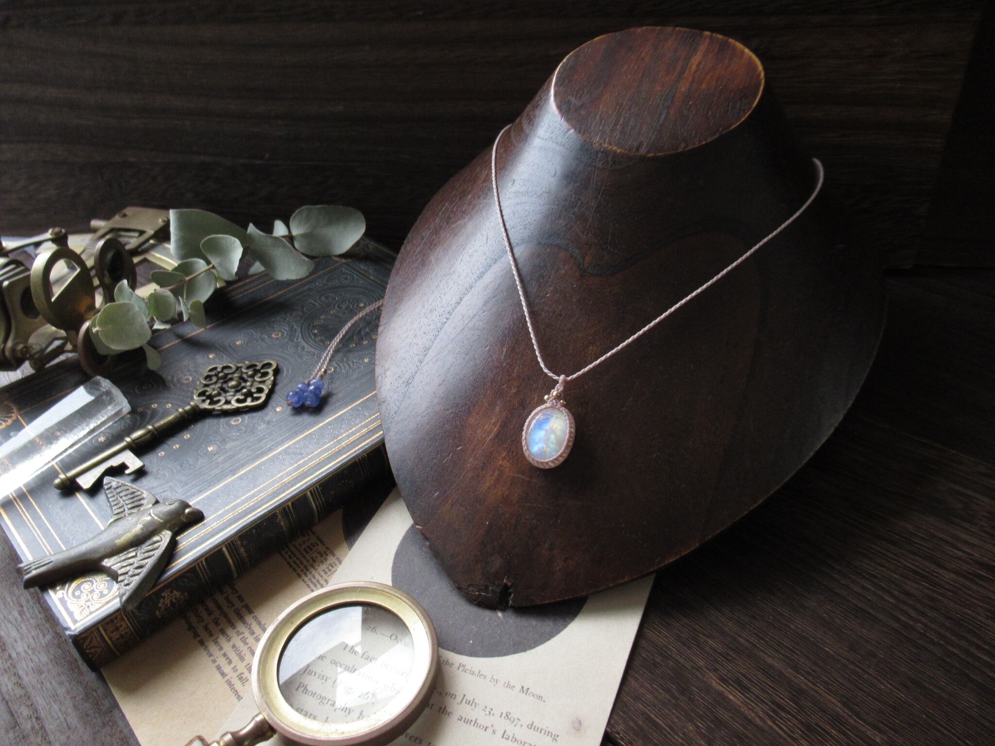 虹色の美しいシラーが見られるレインボームーンストーンでシンプルなペンダントを製作致しました。