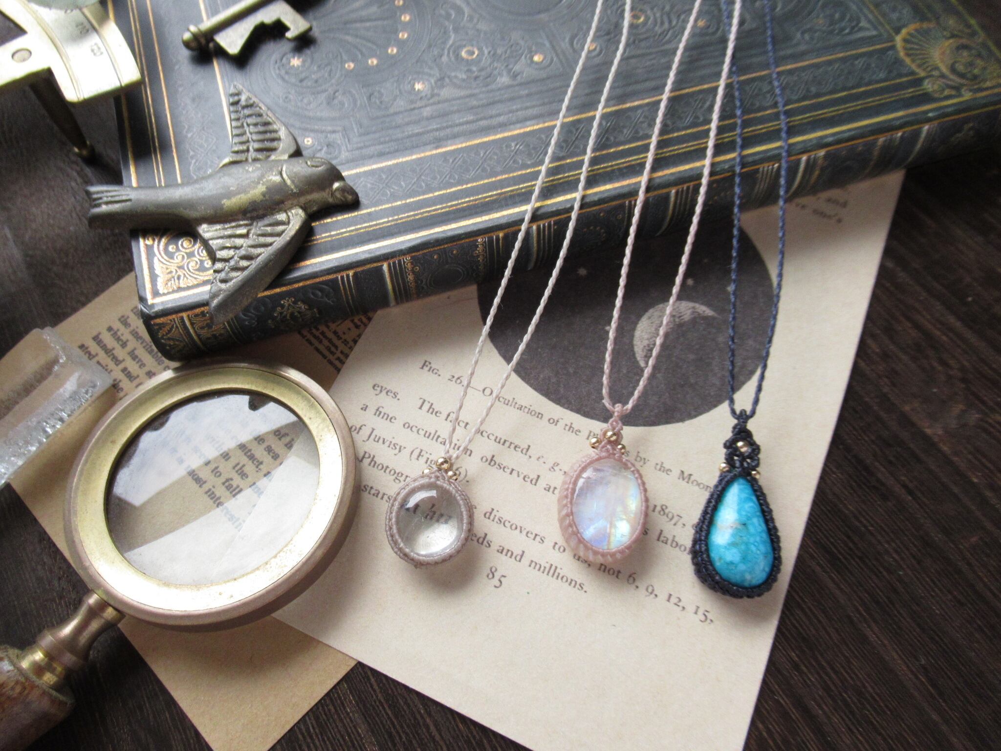 レインボームーンストーンのマクラメペンダント / 0.25㎜仕上げ