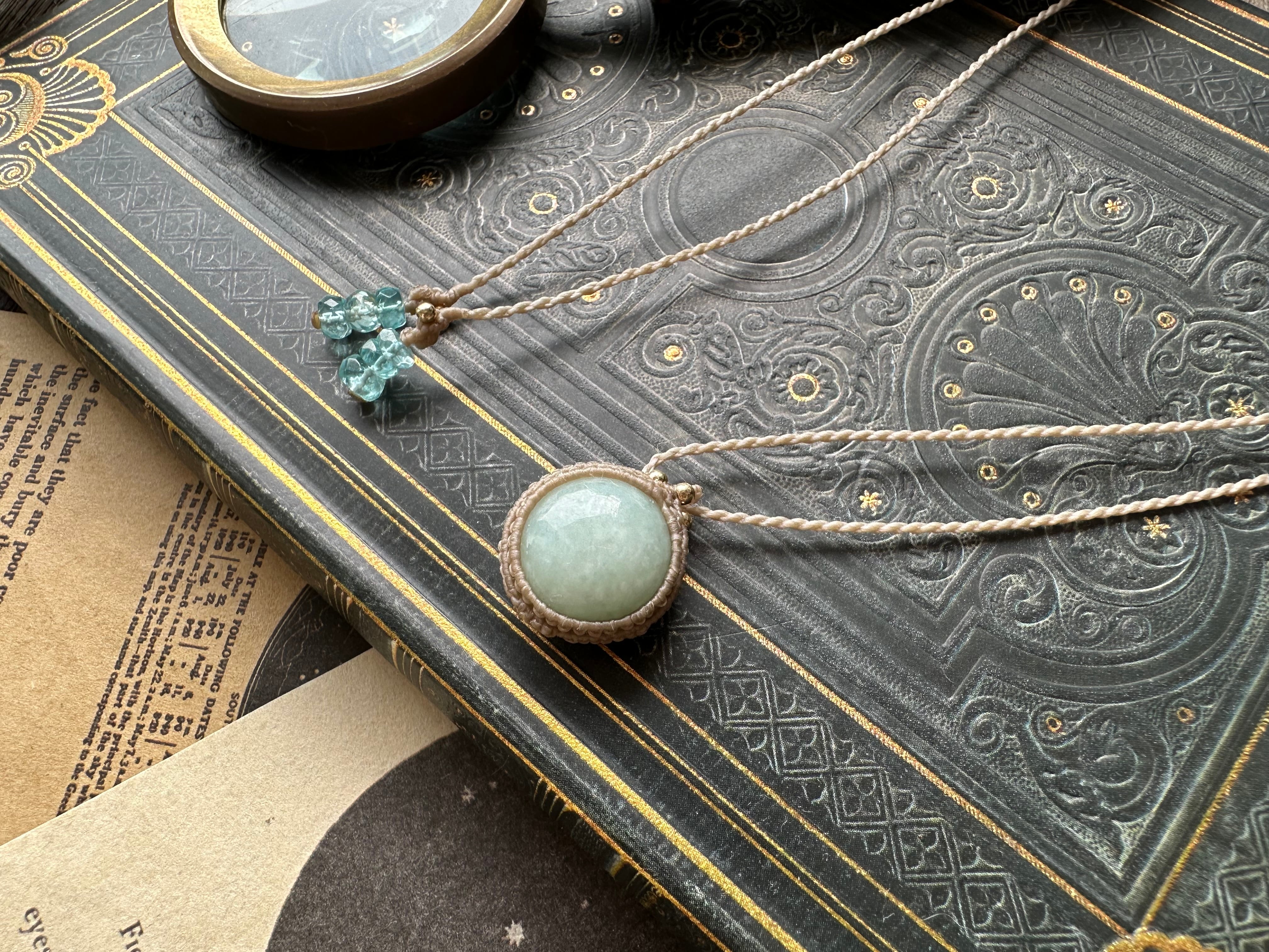 編み糸は0.25mmの極細糸で全体をすっきりしっかりと編み上げています。糸が細いですが強度があり、もったりとせずすっきりとした印象で天然石の色合いや質感をよりお楽しみいただけます。
