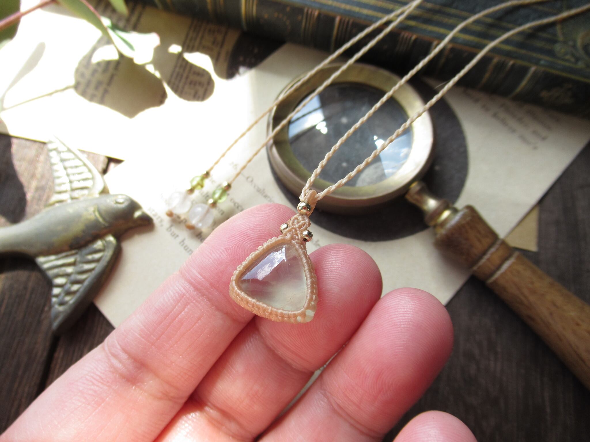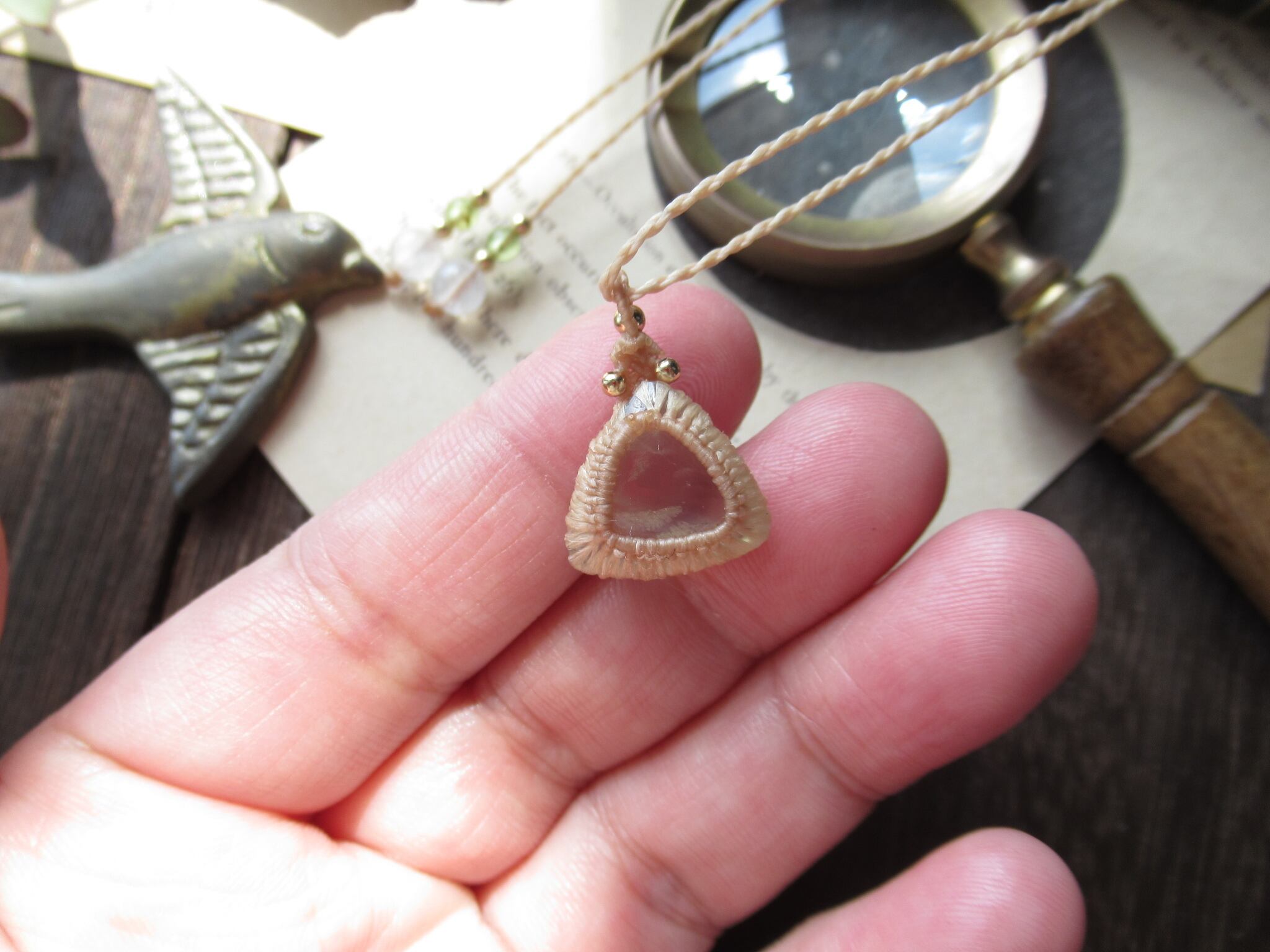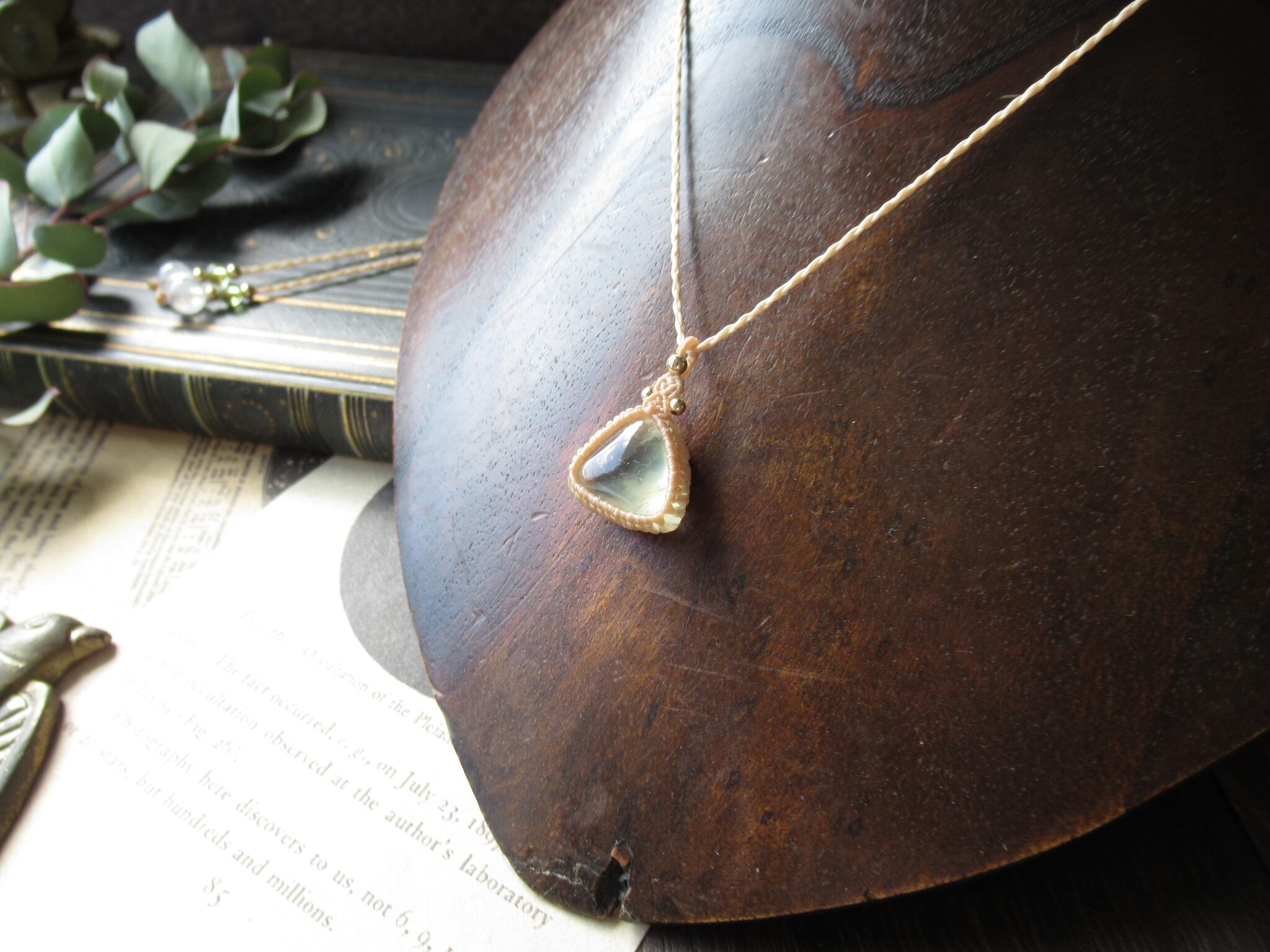 三角形の可愛らしい明るい色合いのプレナイトでシンプルなペンダントを製作致しました。