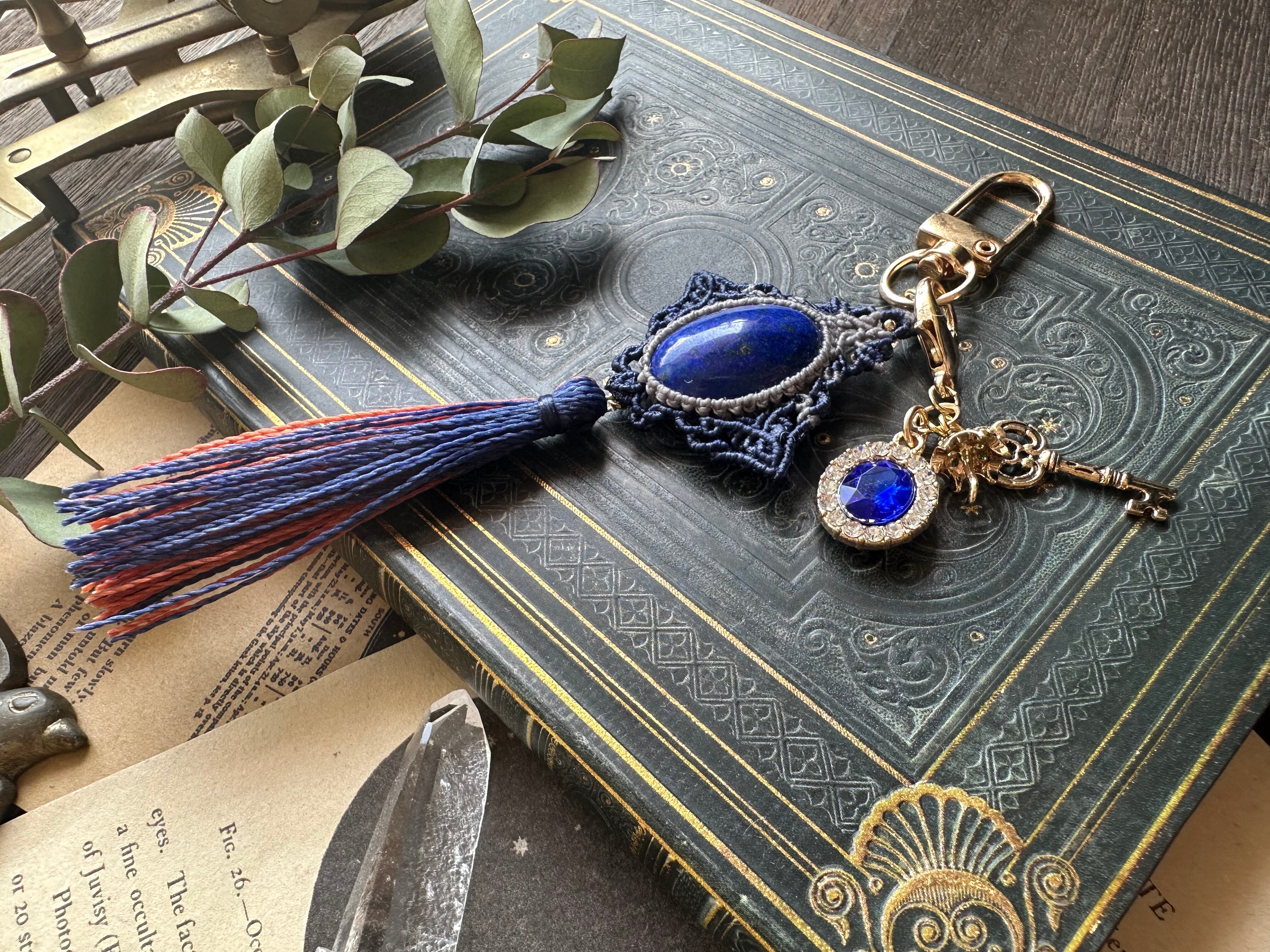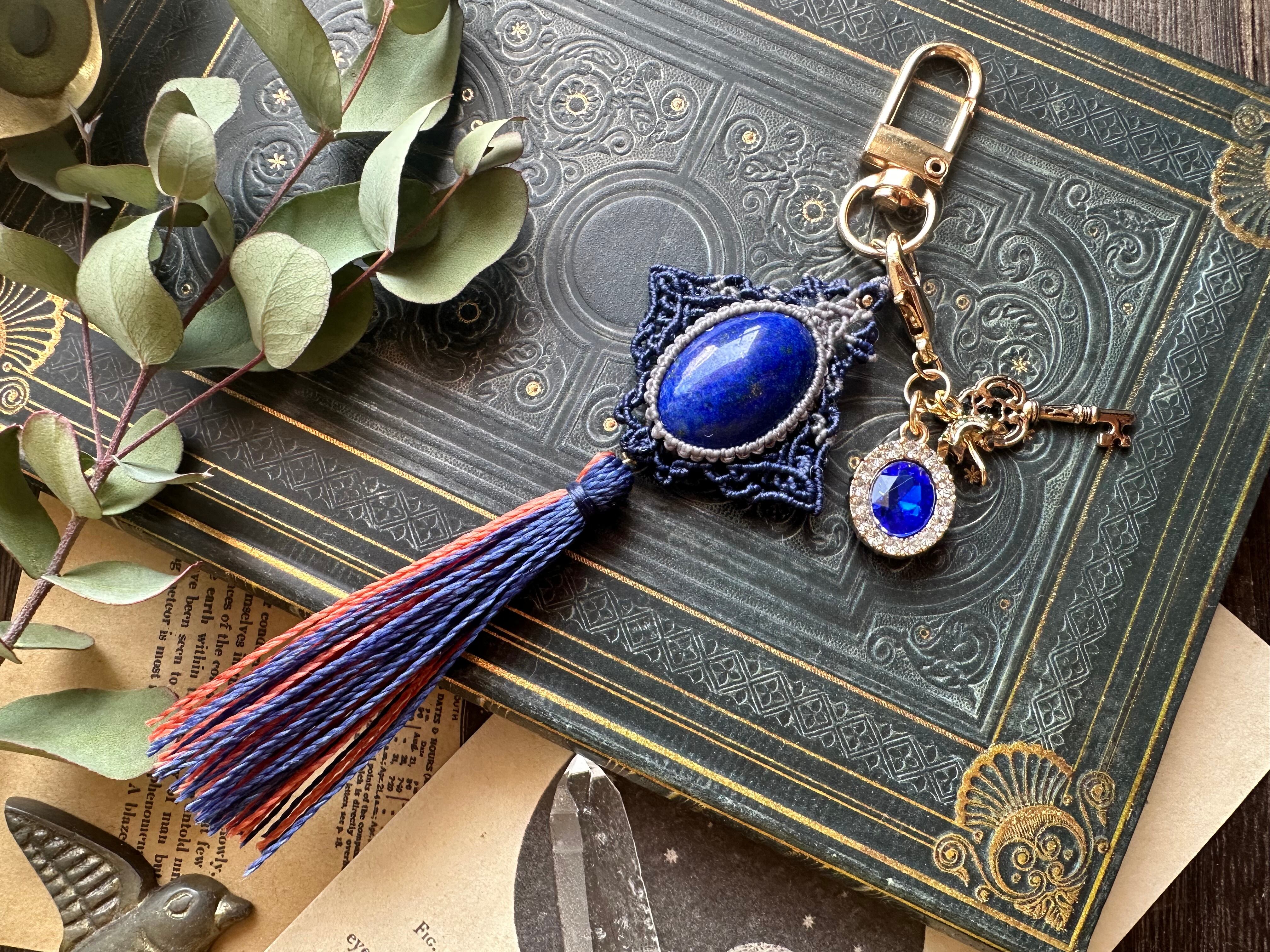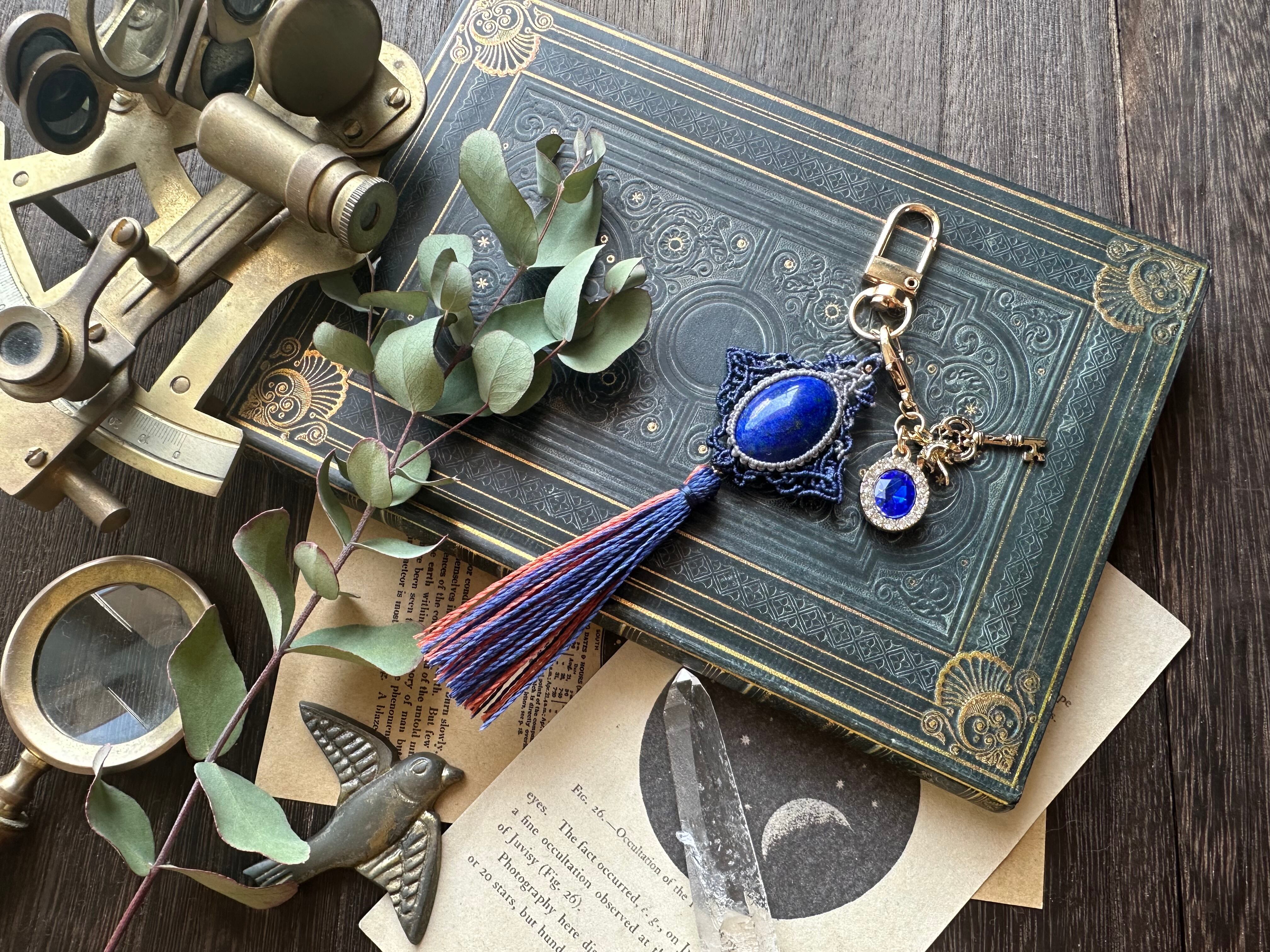 大粒アフガニスタン産ラピスラズリのタッセル&ビジューチャーム