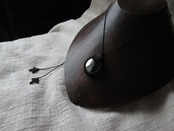ほぼ中央の位置で黒のマグネサイト、パイライトと分かれており、陰陽のような雰囲気のあるカラーです。ペンダントトップ上部にルースにかかるように蓮の花をイメージして装飾を編み込んでいます。