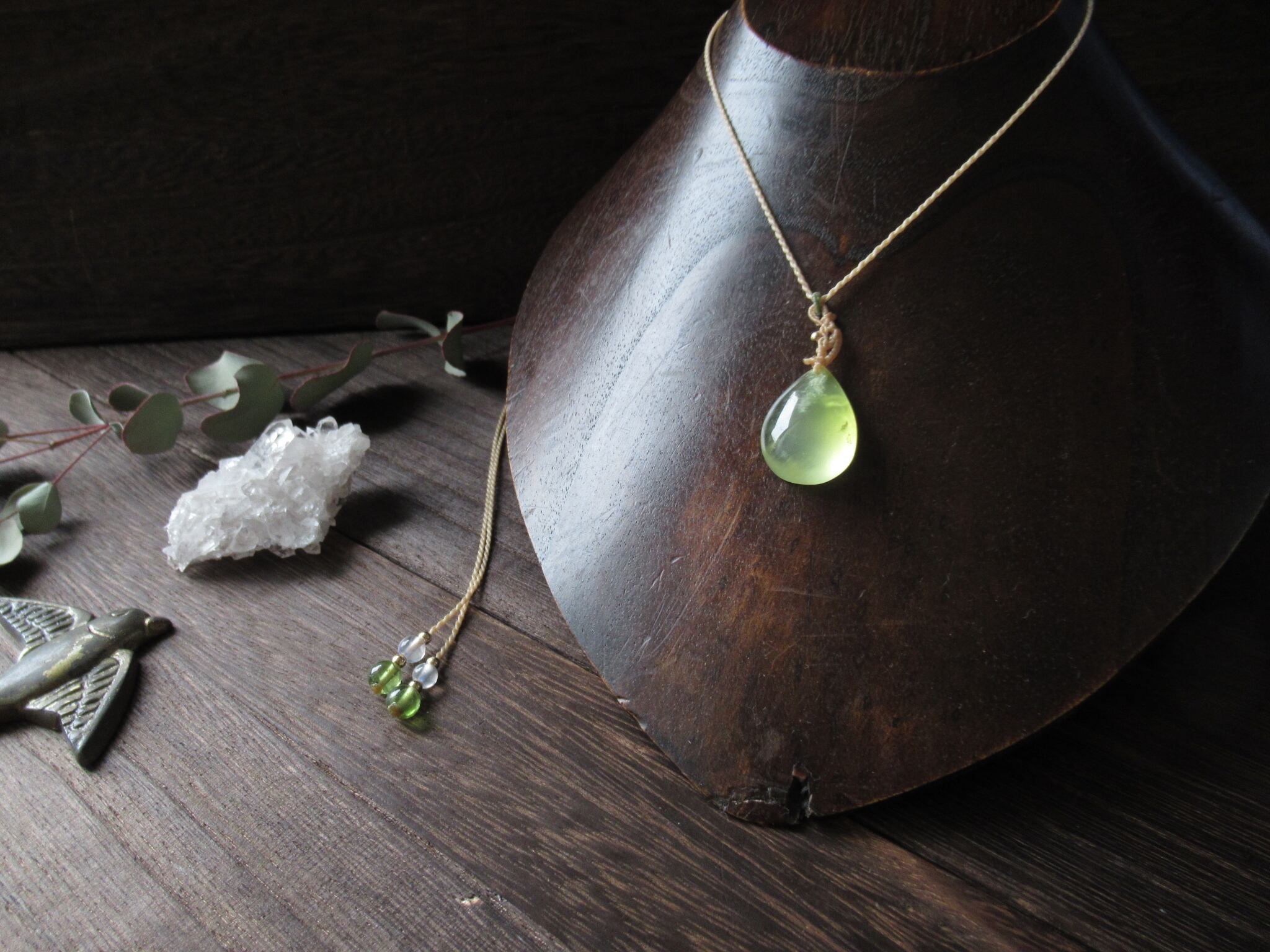 ぷっくりとした粒感が何ともおいしそうなイエロープレナイトをペンダントに仕立てました。