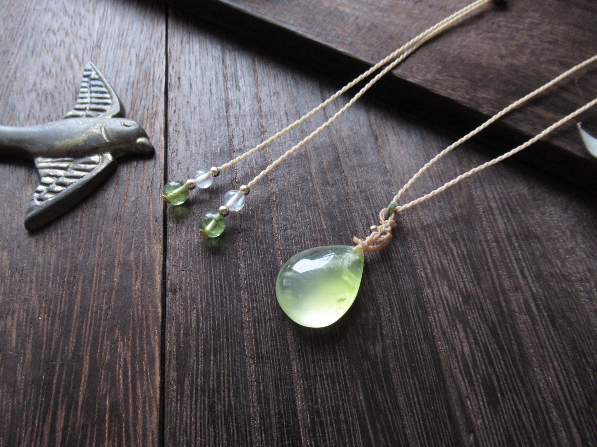 イエロープレナイトのマクラメペンダント