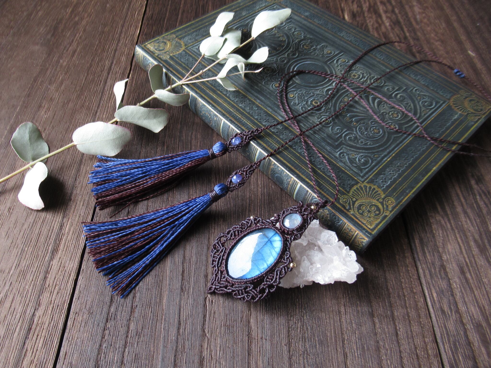 ブルーラブラドライト×レインボームーンストーンのタッセルペンダント