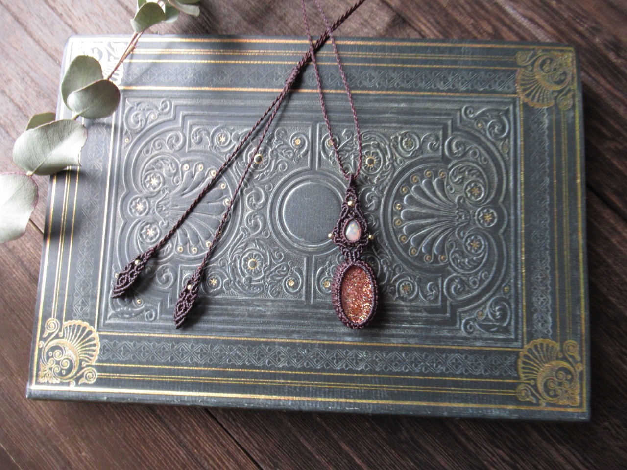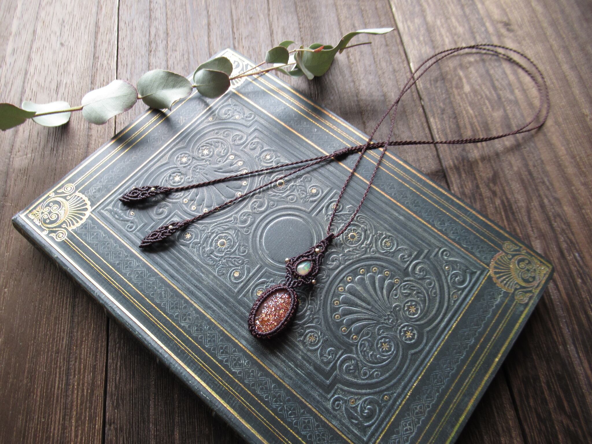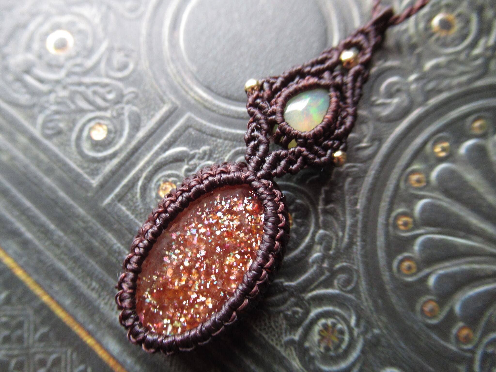 ≪W様専用≫エチオピア産オパールとインド産サンストーンのペンダント