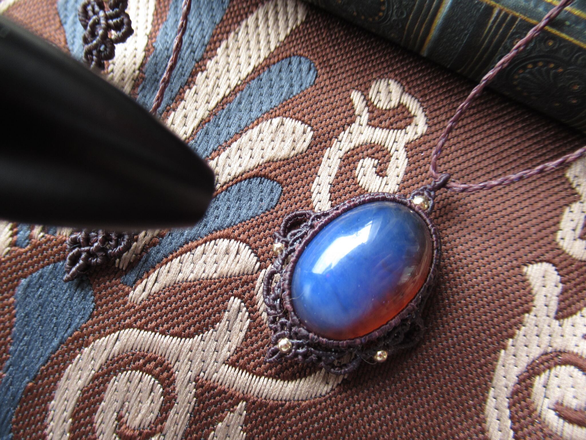 青琥珀 / スマトラ産ブルーアンバーのマクラメペンダント /0.25mm仕上げ