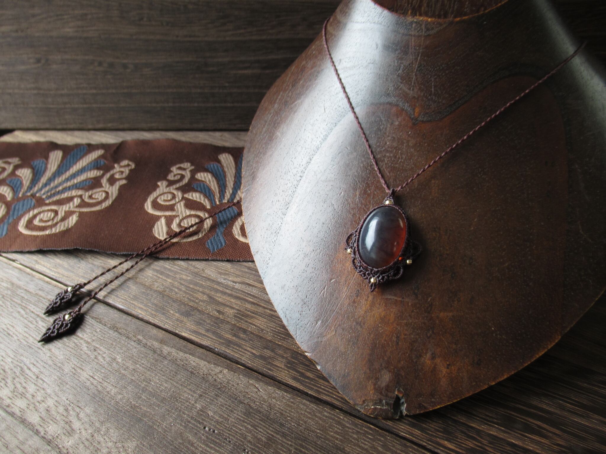 0.25mmの糸で繊細に編み込んでおりますので、軽さがありながらすっきりとお使いいただけます。琥珀のルース自体が天然石と比べてとても軽いので、重いペンダントだと肩こりが心配という方におすすめです。