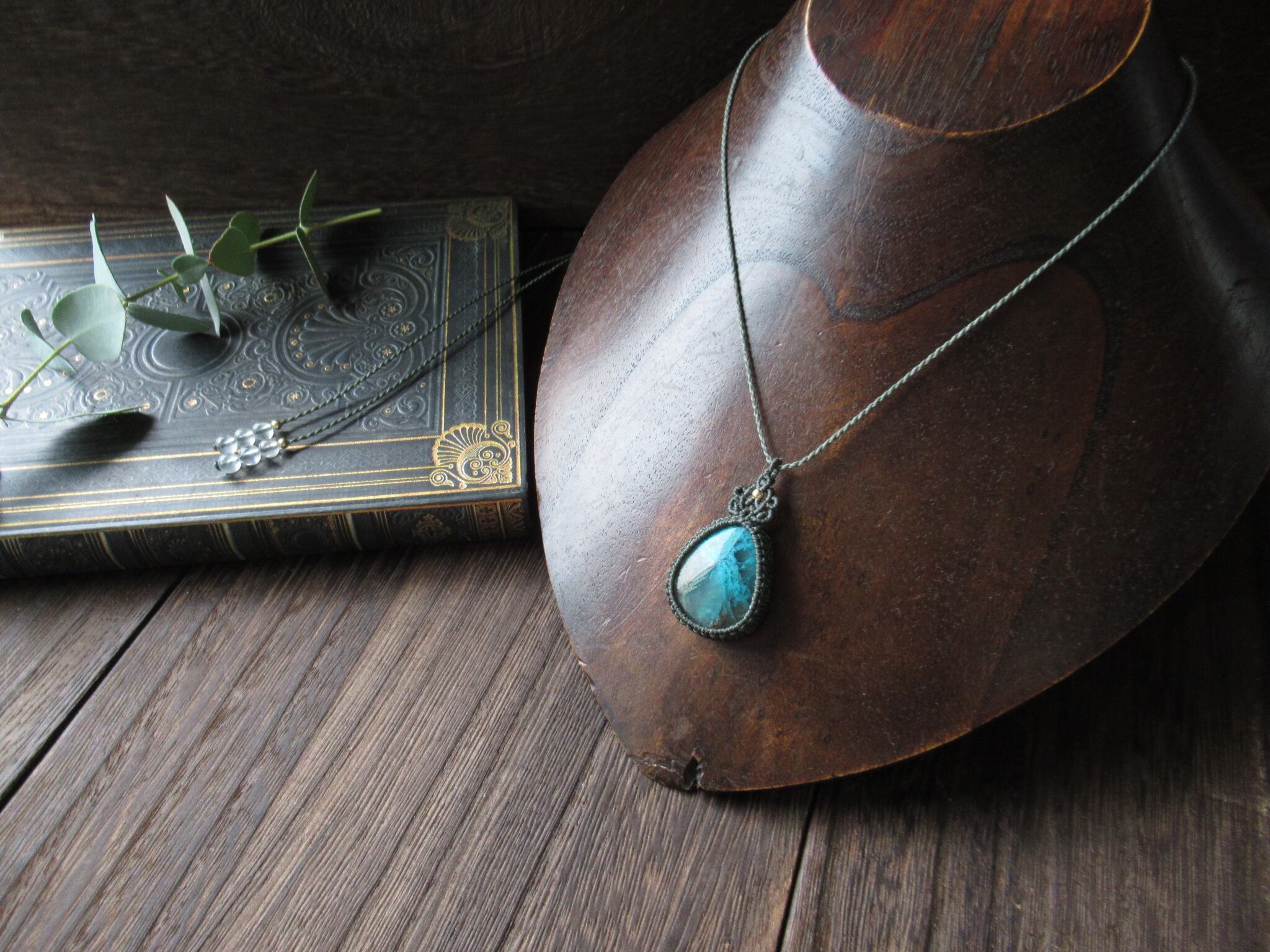 南洋の海と島々のような風合いが美しいアズライトクリソコラをペンダントに仕立てました。