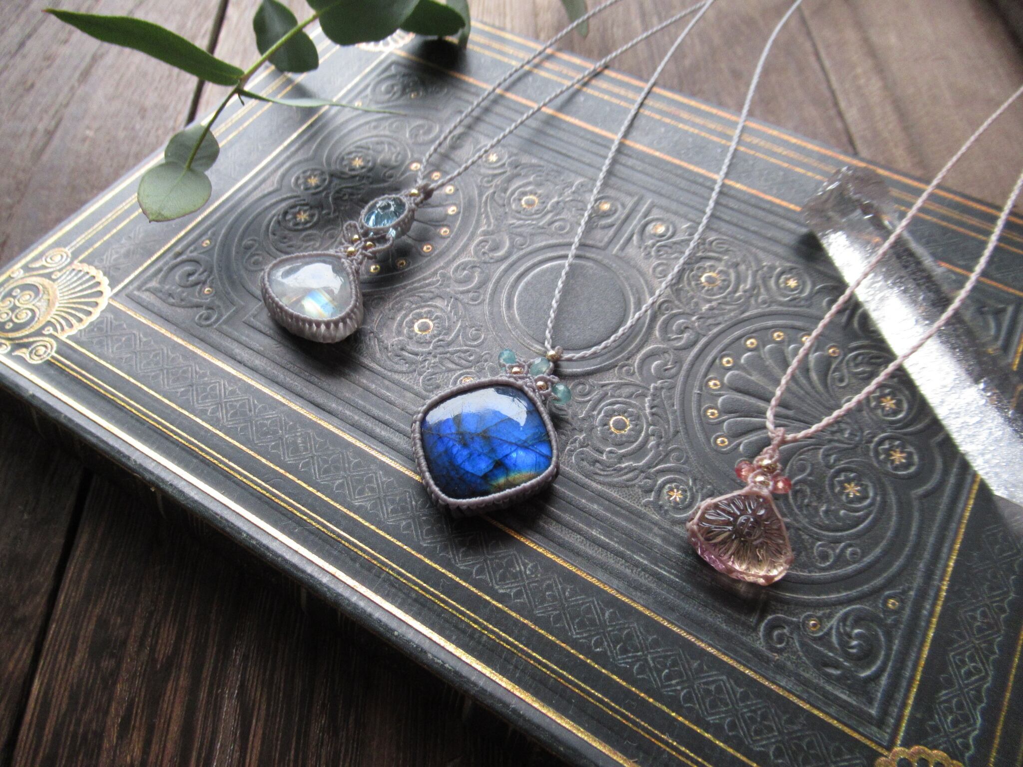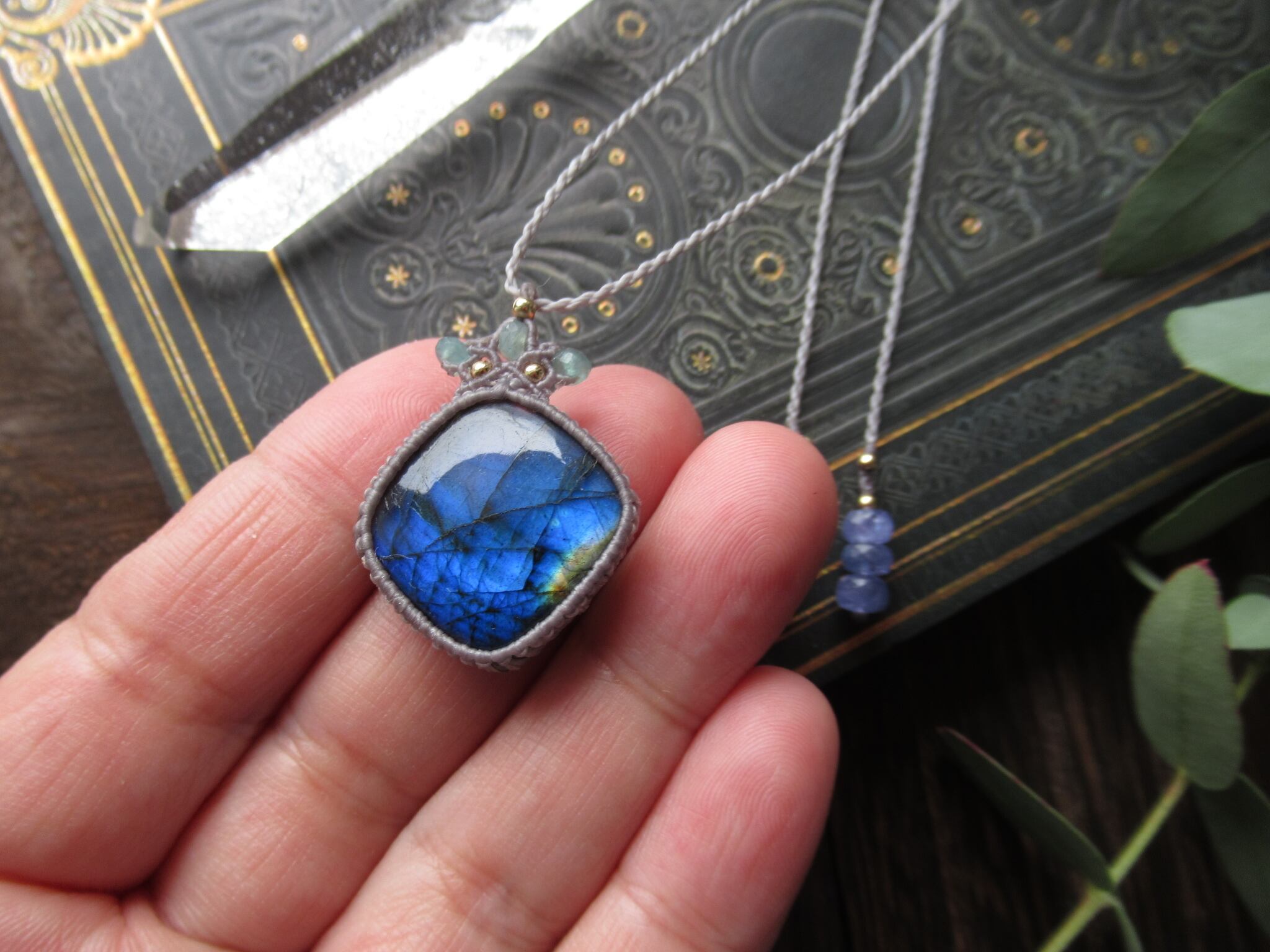 ブルーのシラーがとても美しいブルーラブラドライトをペンダントに仕立てました。