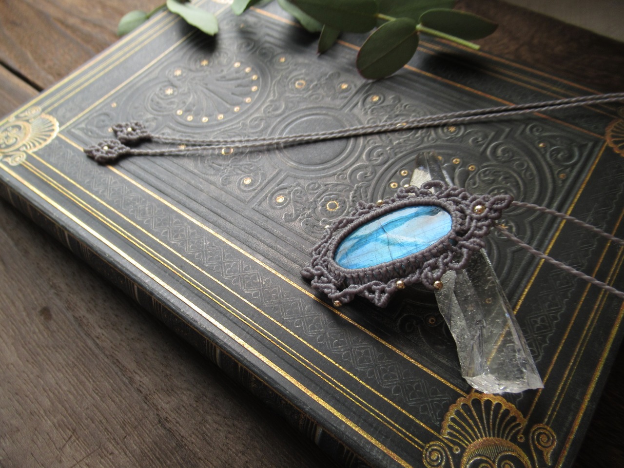ブルーラブラドライトのフレーム編みペンダント