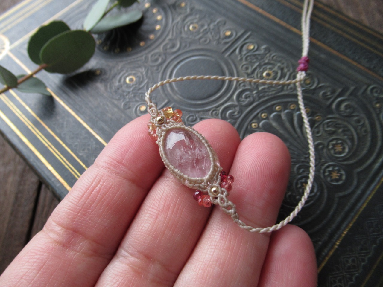 虹入り宝石質モルガナイトのマクラメブレスレット