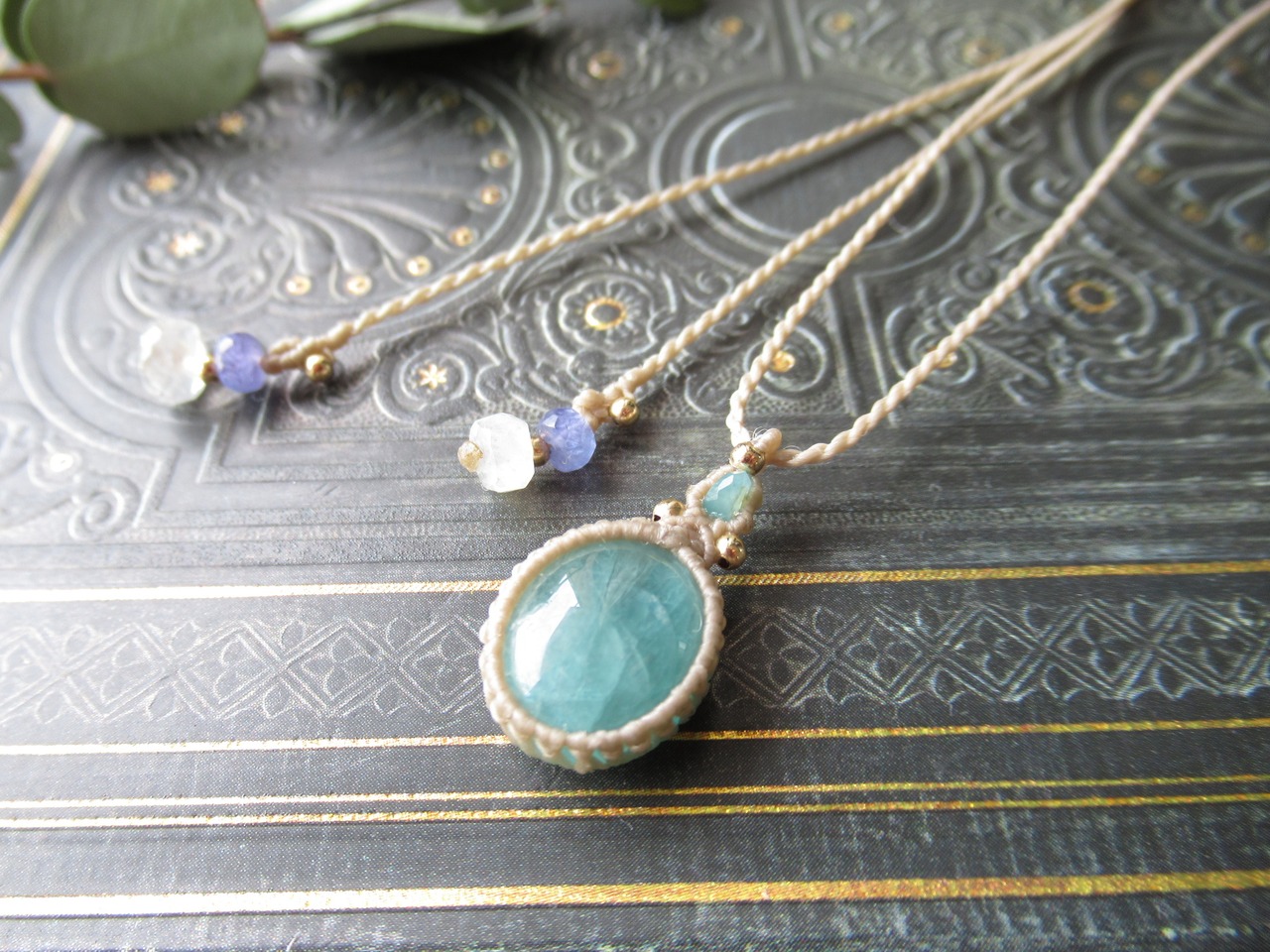 編み糸は0.25mmの極細糸で全体をすっきりしっかりと編み上げています。糸が細いですが強度があり、もったりとせずすっきりとした印象で天然石の色合いや質感をよりお楽しみいただけます。