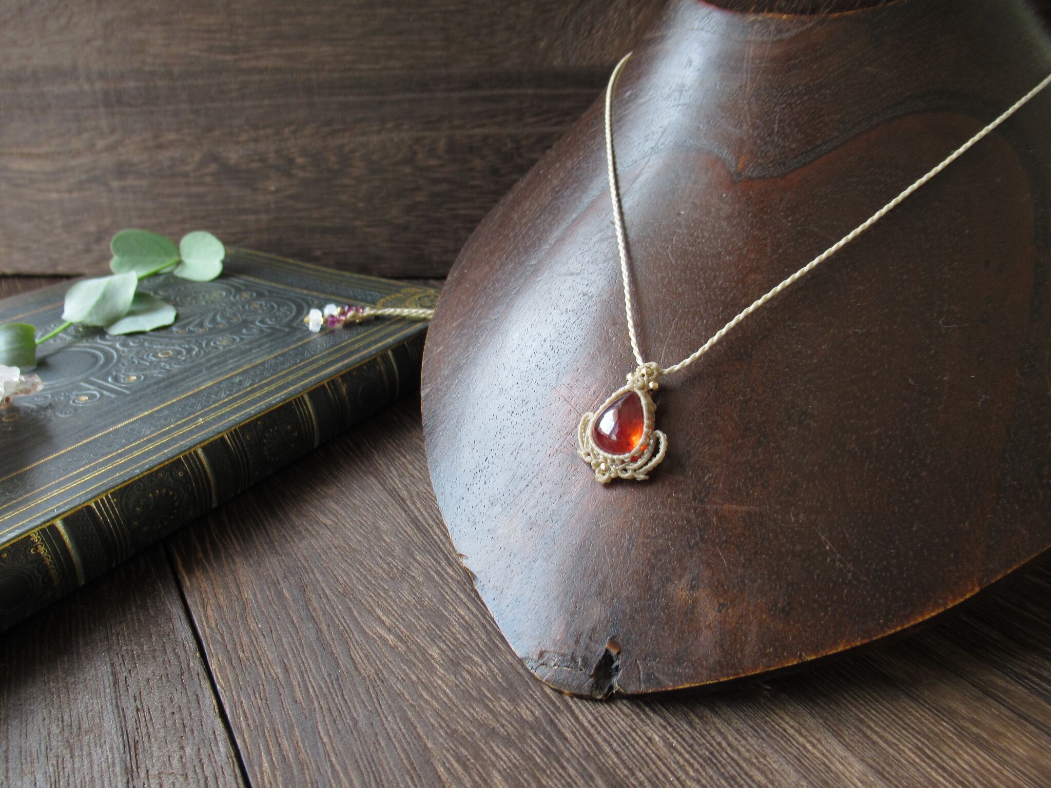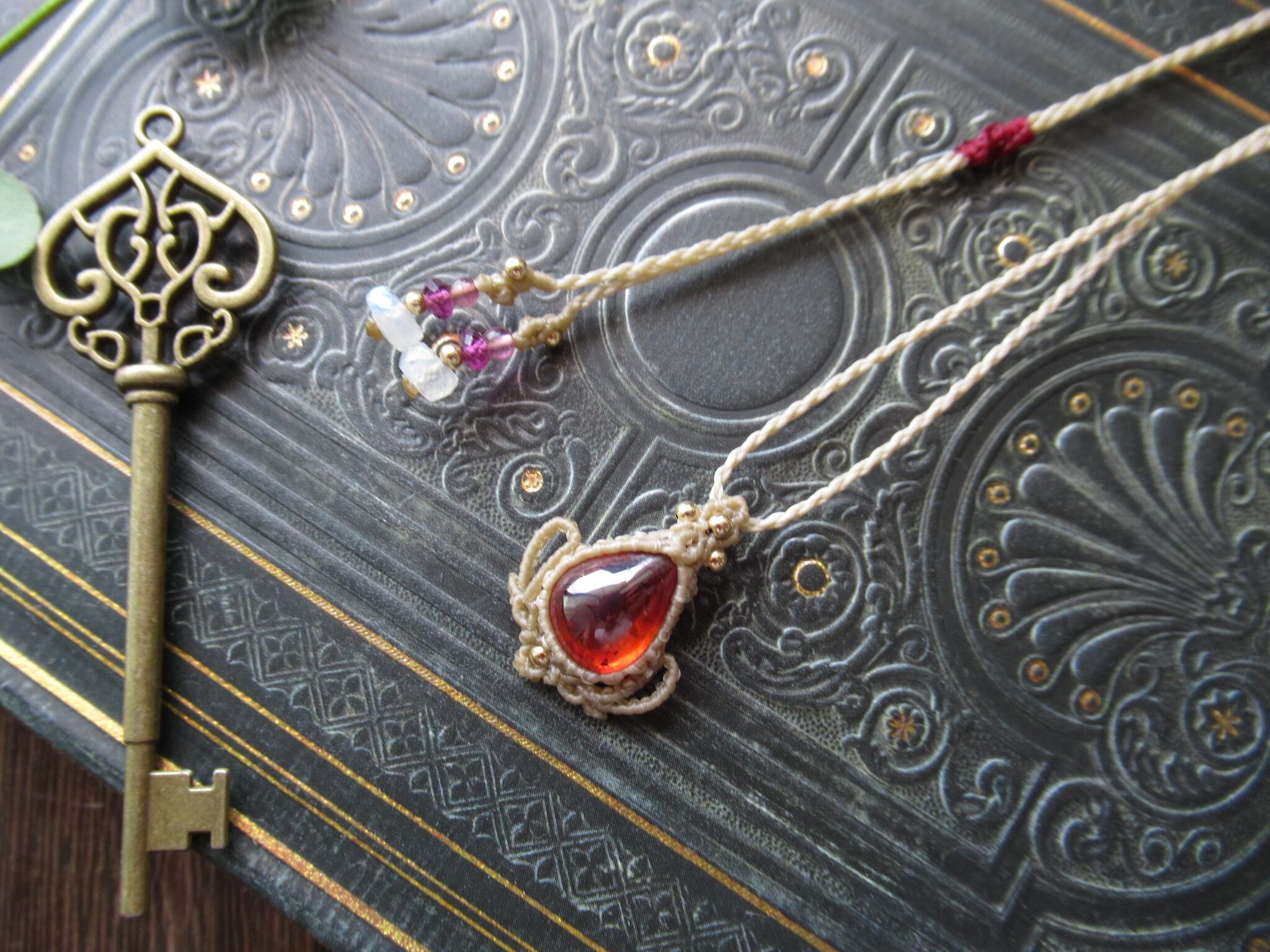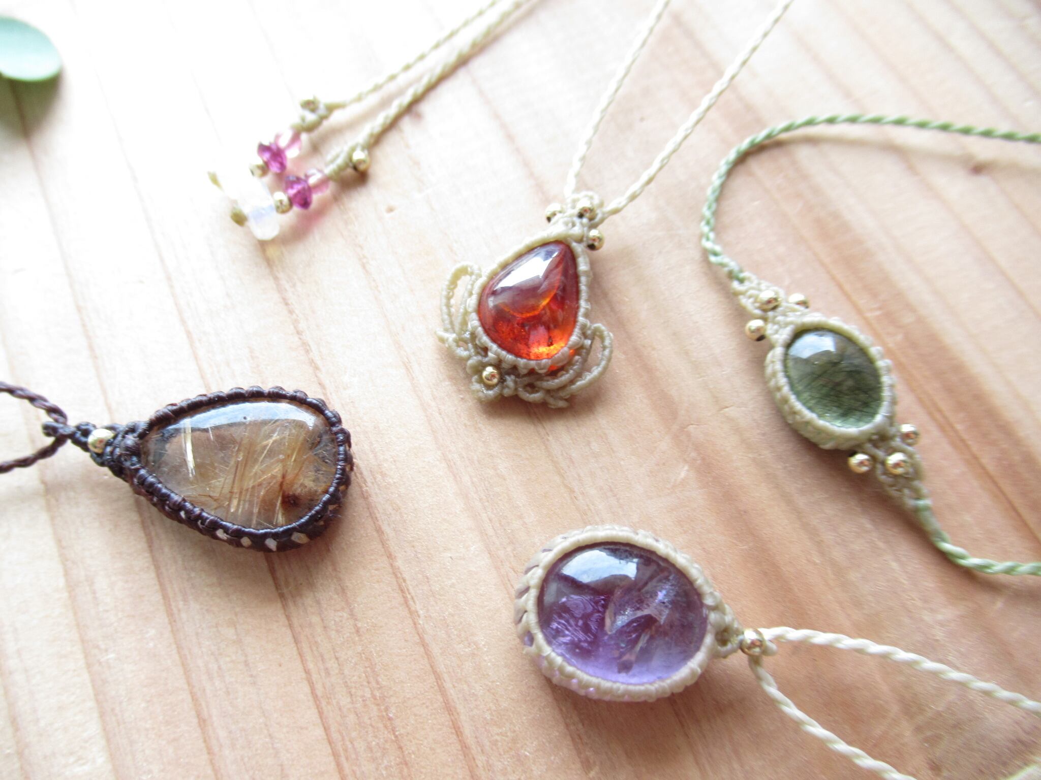 美しい太陽の欠片のようなスペイン産のスファレライトを日常使い出来る、マクラメペンダントに仕立てました。