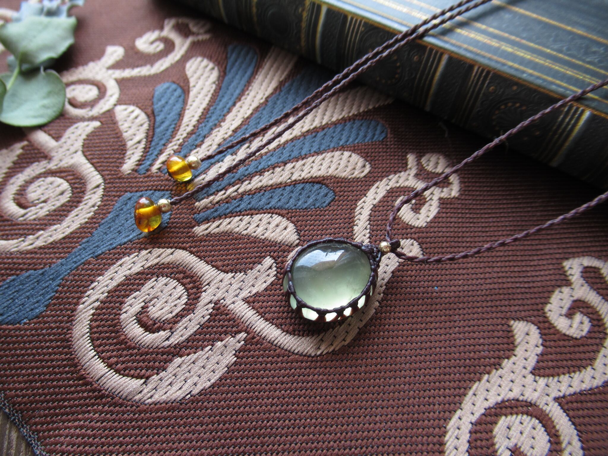 ぷるん、とみずみずしくおいしそうなプレナイトでシンプルなペンダントを製作致しました。