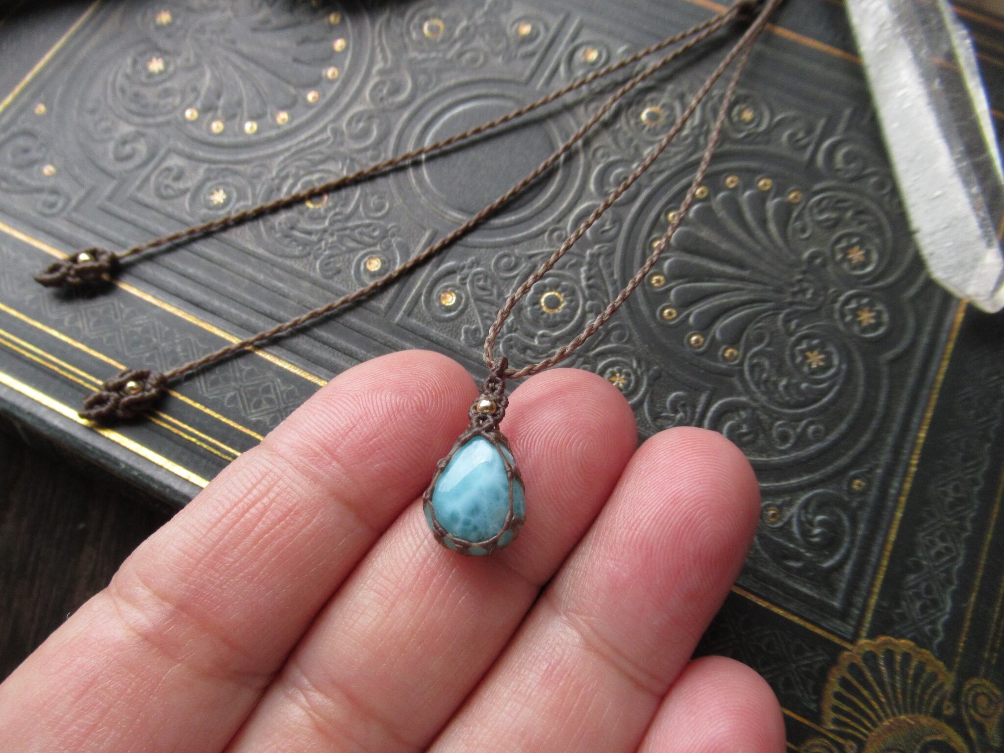 しずく型のちいさなラリマーでペンダントを製作しました。