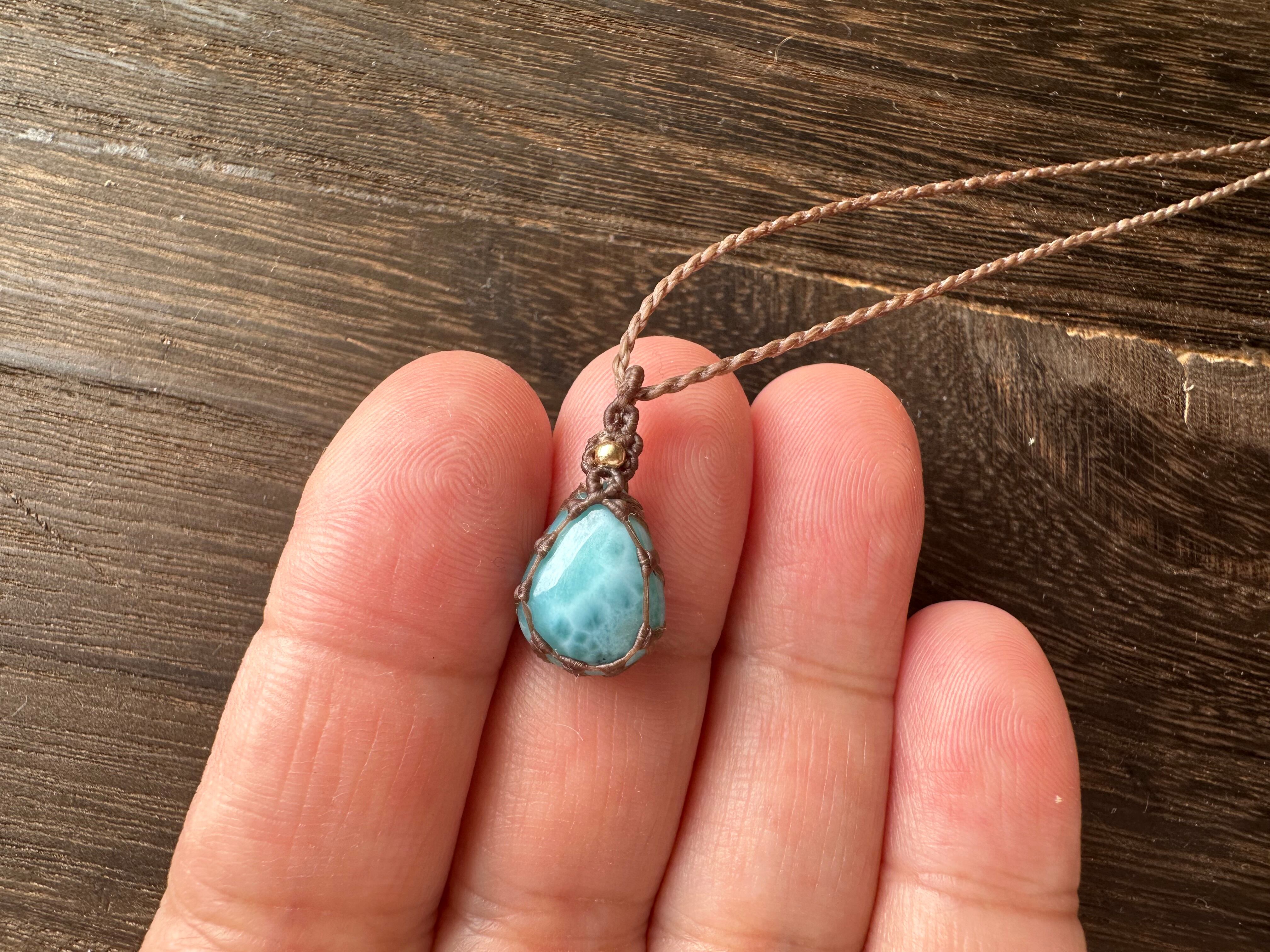 小さめなのですが、雫型の中にさざ波のような模様が浮かぶとても美しいルースです。ラリマーといえばの色合いで、見ていると愛らしくとても癒されるお色です。