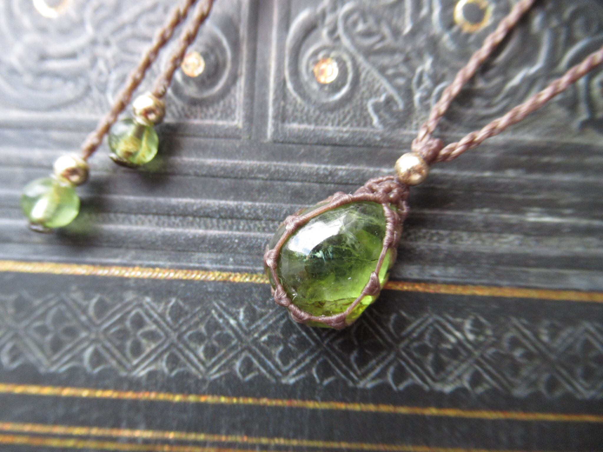 太陽の石あるいはペレの涙 / パキスタン産ペリドットのちいさなペンダント(雫) / 0.25㎜仕上げ