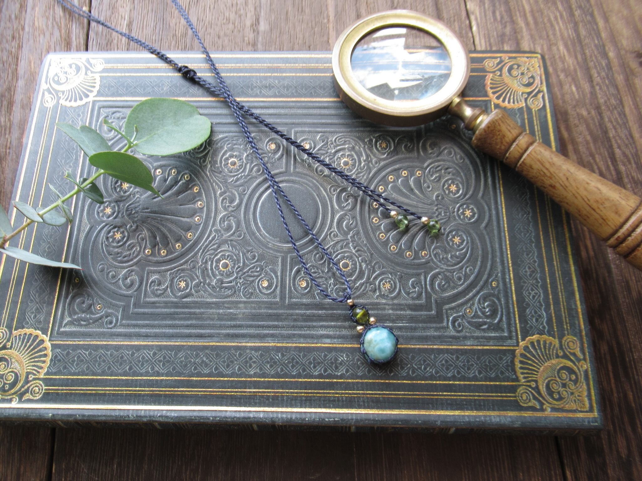 小さなラリマーとグリーントルマリンのシンプルペンダント / 0.25㎜仕上げ