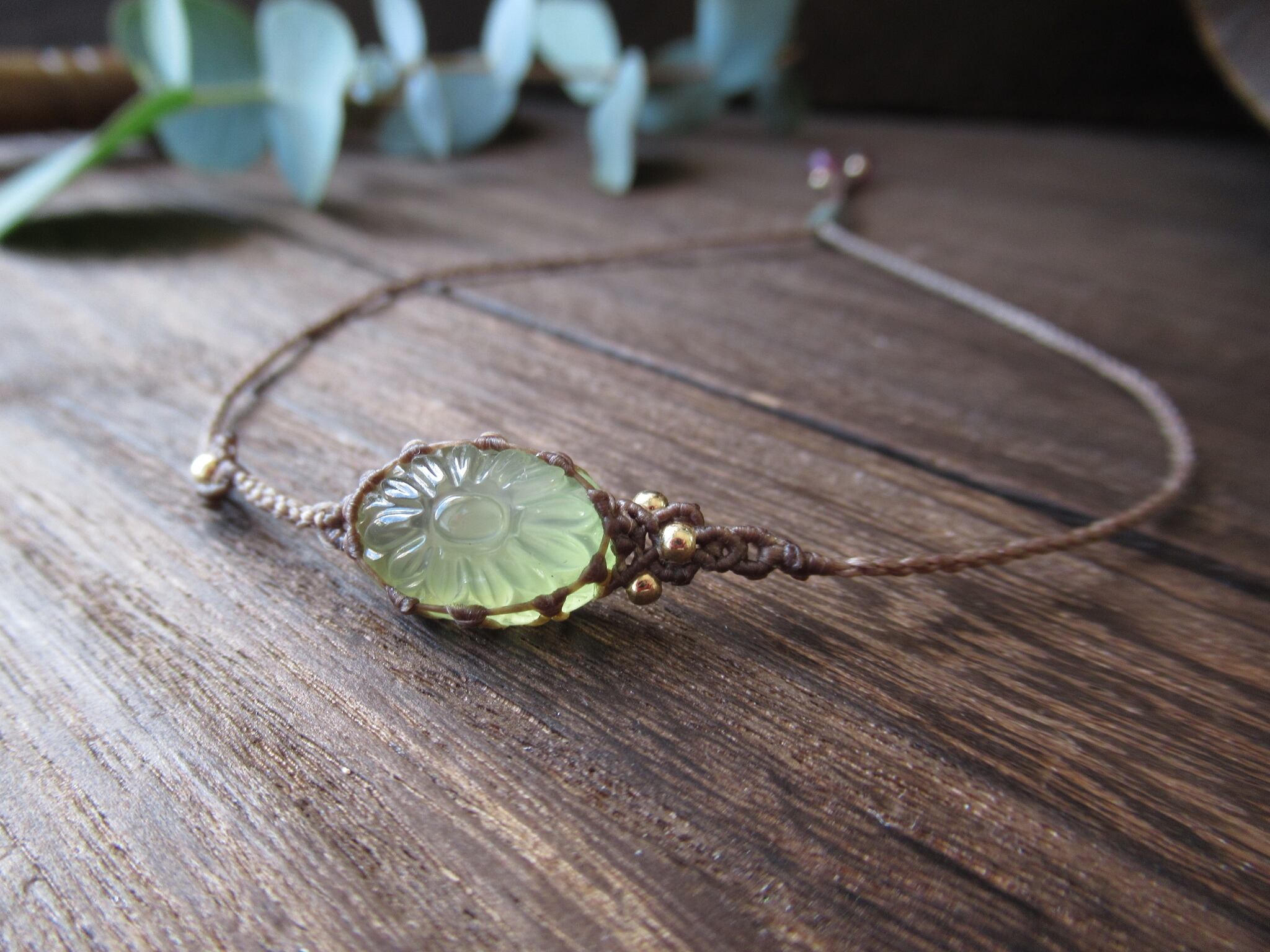 お花模様のアフリカ産プレナイトのアシンメトリーブレスレット