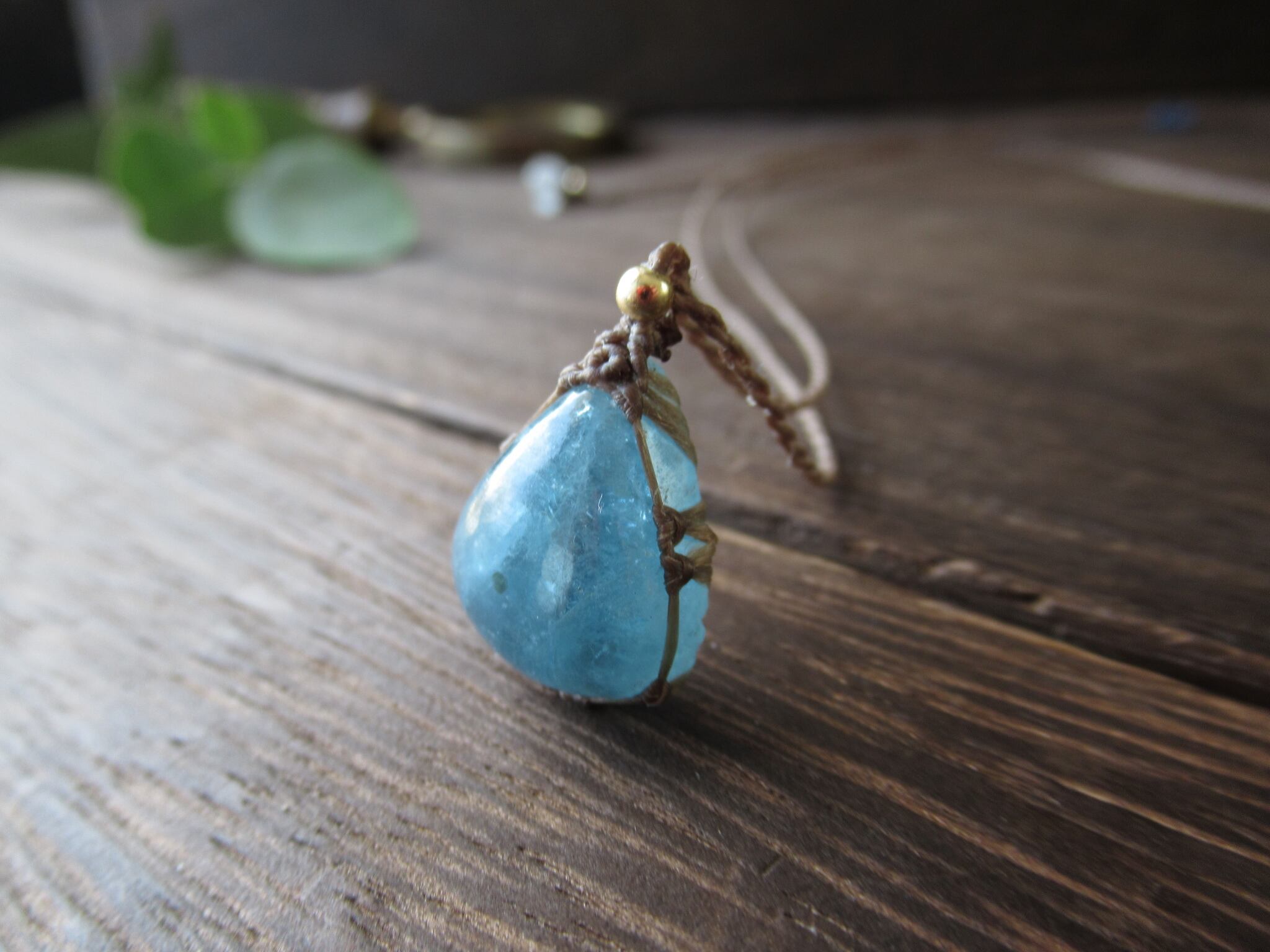 ぷっくりとした張り感のある非加熱アクアマリンを、日常でたくさんお使いいただけるようなカジュアルなペンダントに致しました。