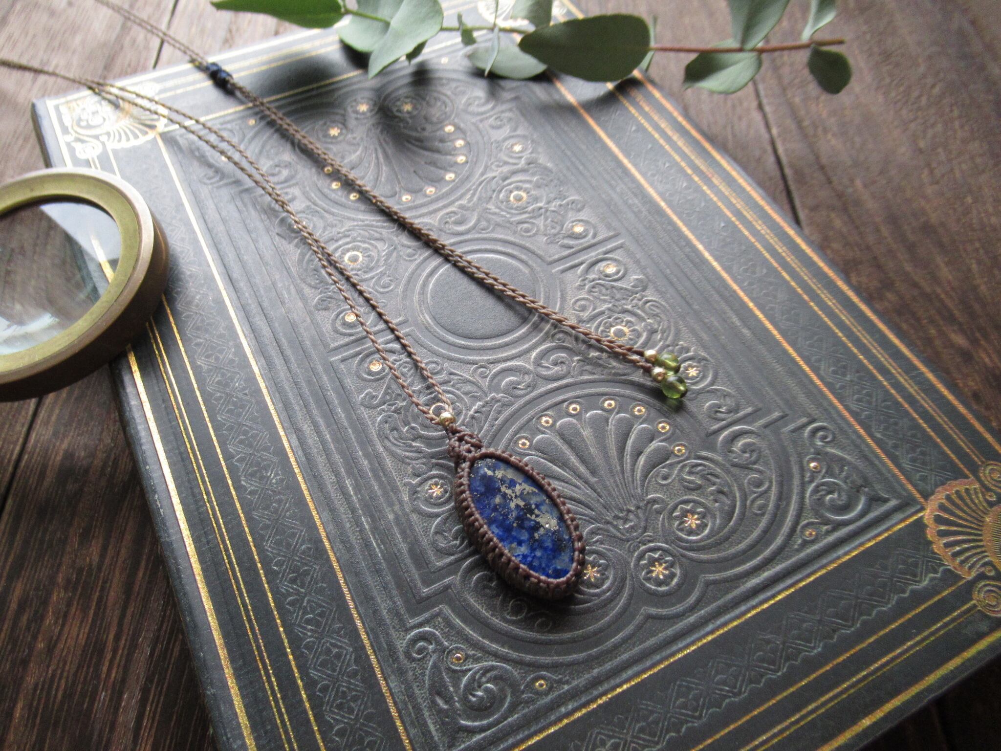 パイライトが天の川のように美しく輝くラピズラズリを、シンプルでカジュアルなペンダントに仕立てました。