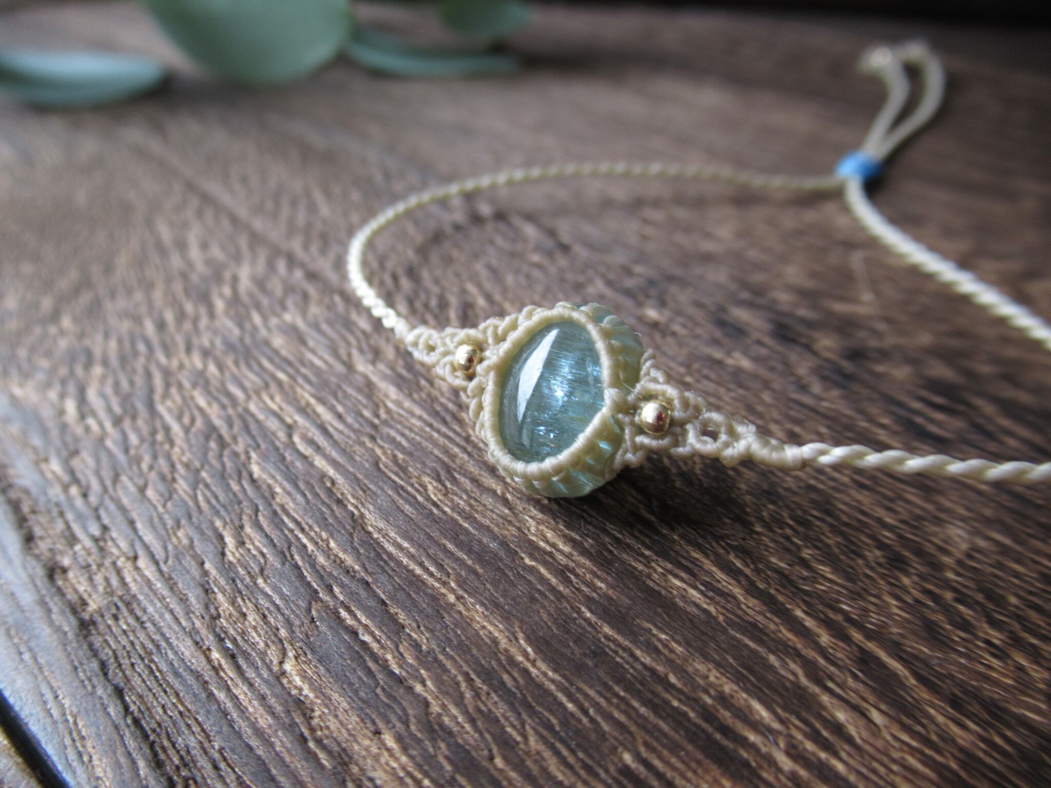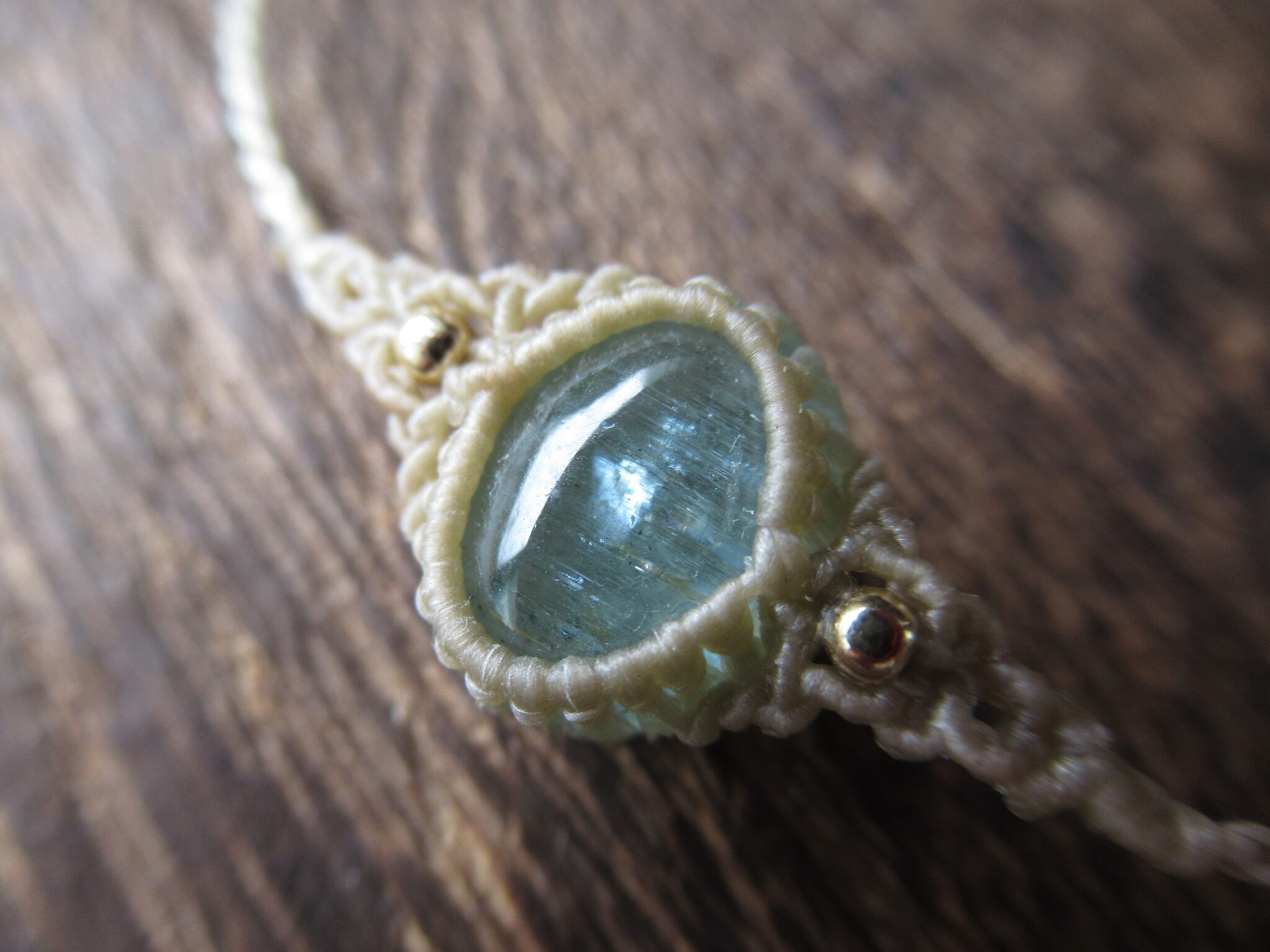 0.25mmの糸で丁寧に編み上げ、すっきりとした美しいアクアマリンのお色を引き立てられるようにひと目ひと目丁寧に仕上げています。
