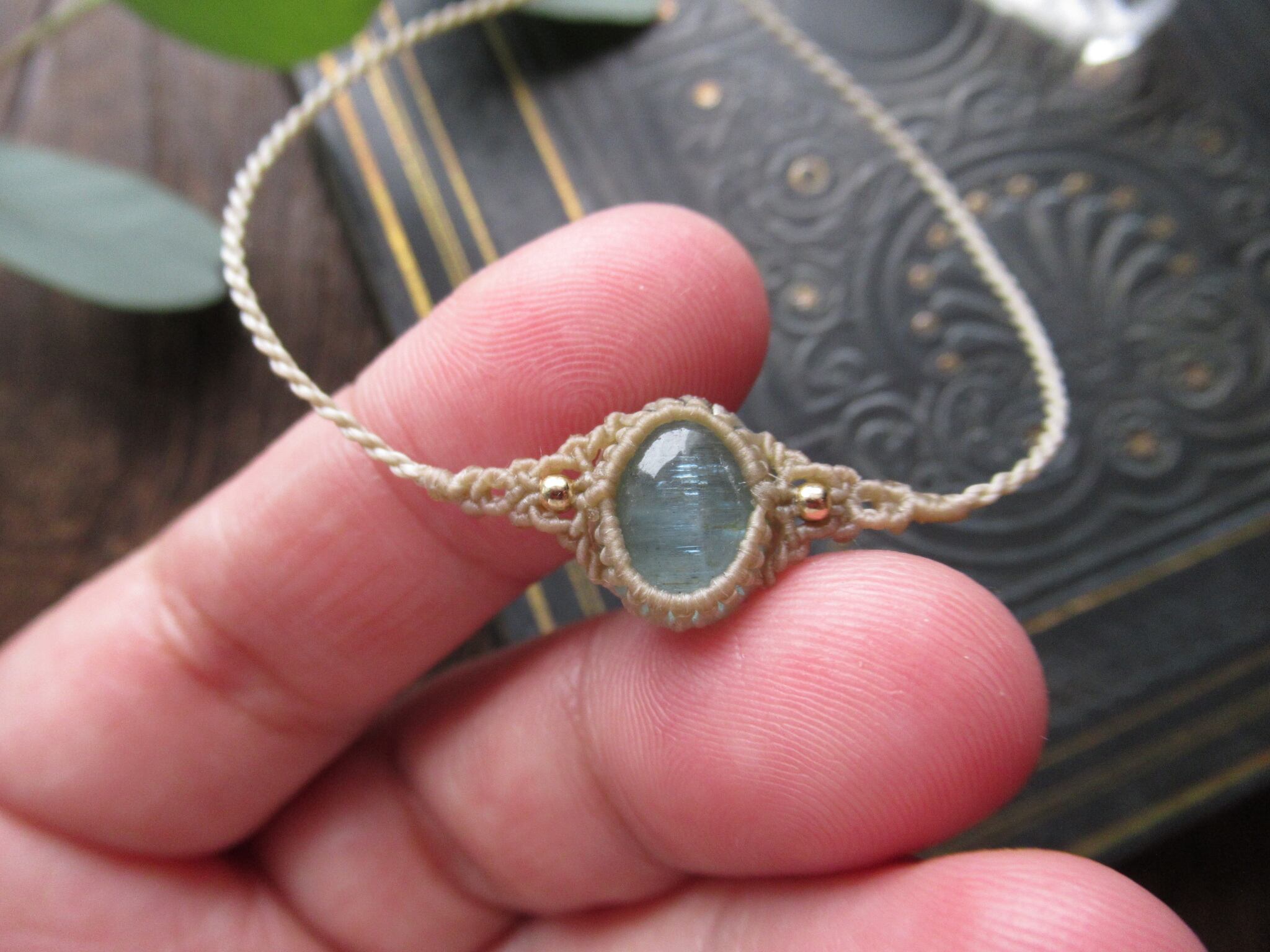 とても美しく、光沢感と色合いが素晴らしいとっておきのアクアマリンキャッツアイをブレスレットに致しました。