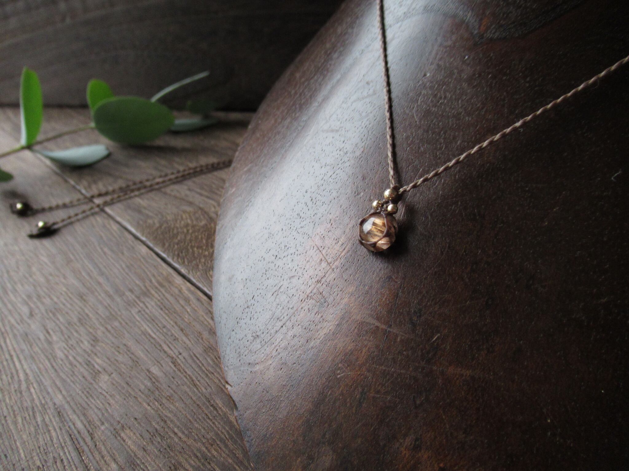 ちいさなルチルクォーツキャッツアイのマクラメペンダント