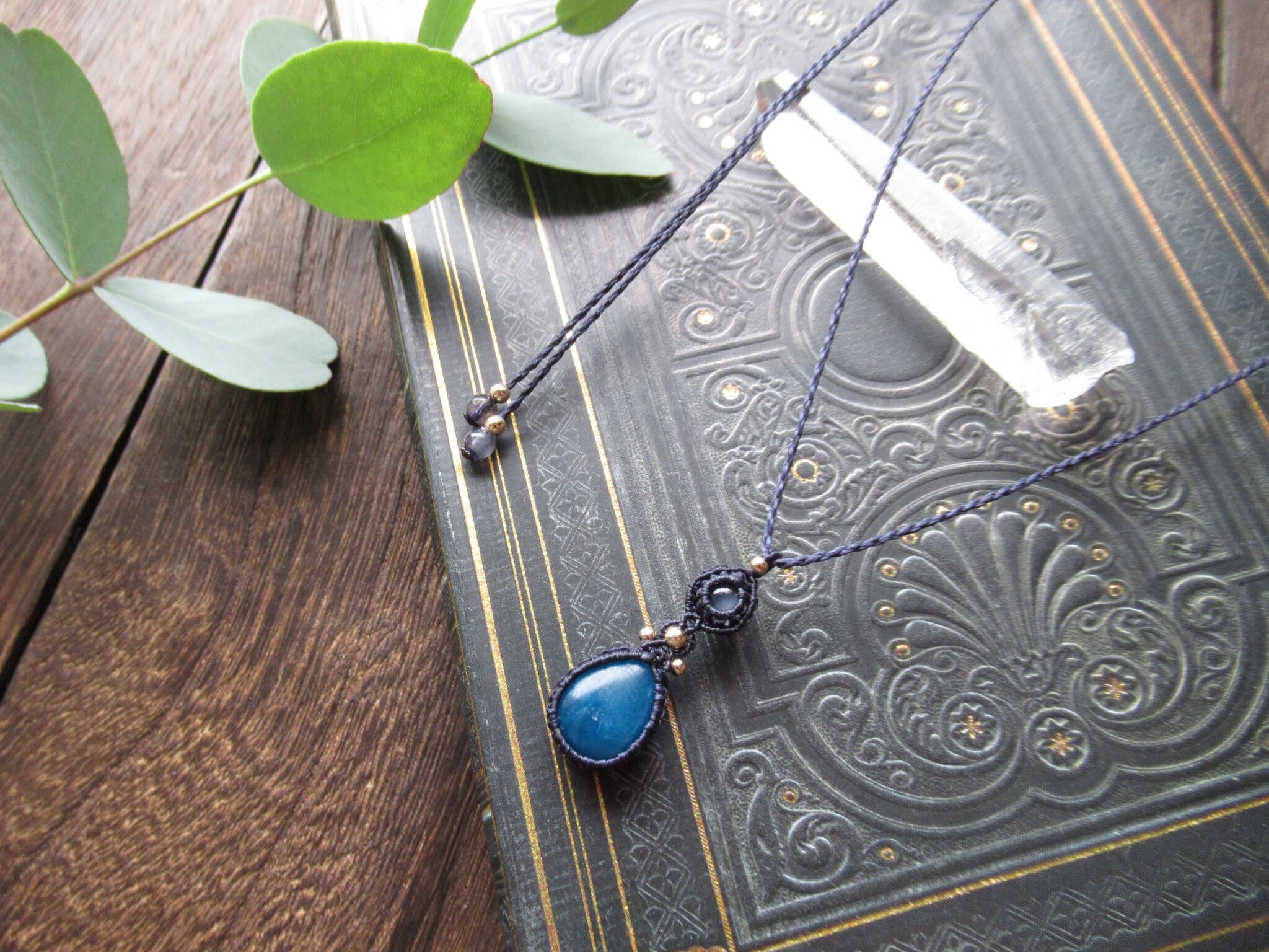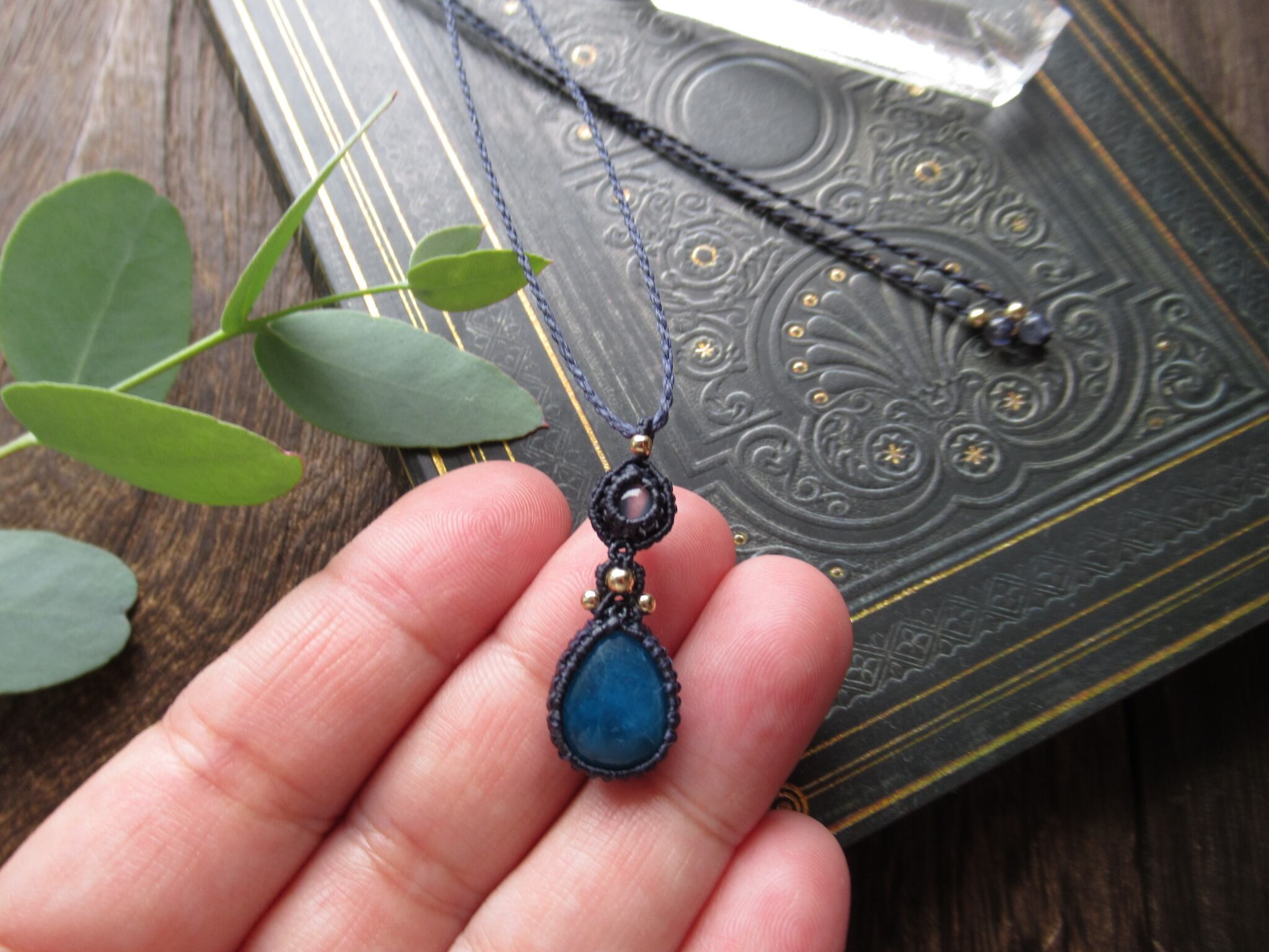 宝石質ムーンストーンとブルーアパタイトのシンプルペンダント / 0.25㎜仕上げ