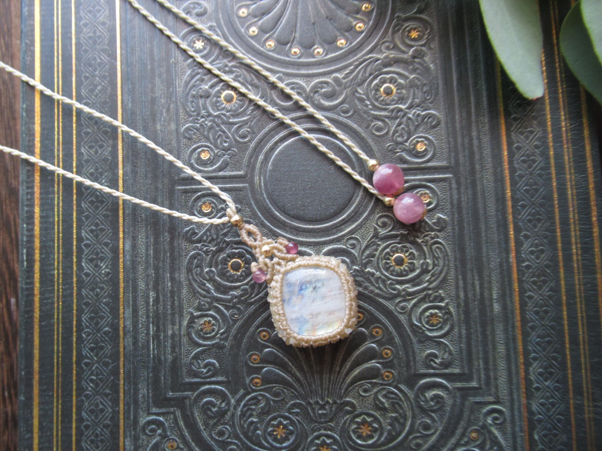 レインボームーンストーンのマクラメペンダント