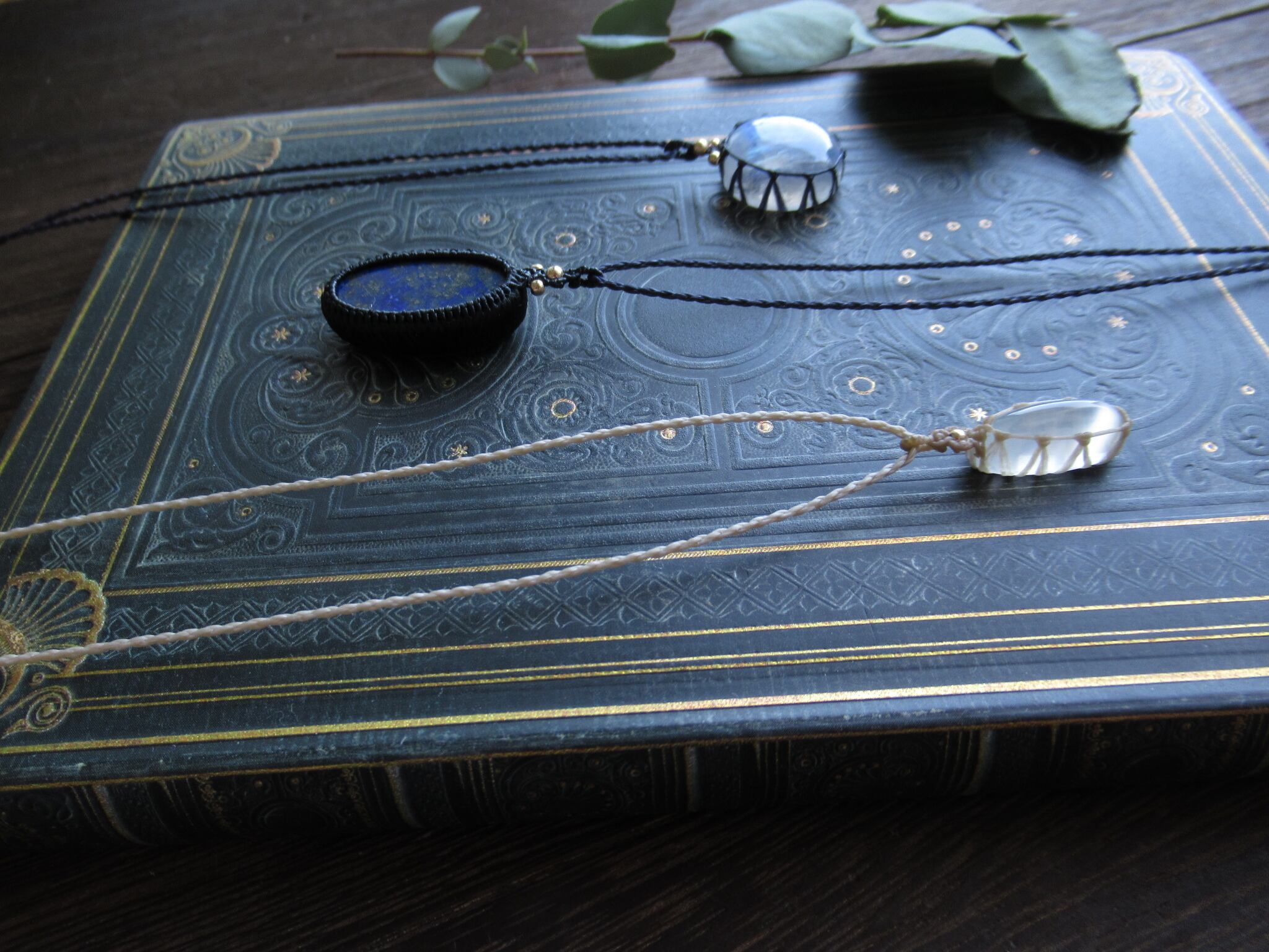「満月」という呼び名が相応しい、輝く白い月のようなレインボームーンストーン(ホワイトラブラドライト)でペンダントを製作致しました。