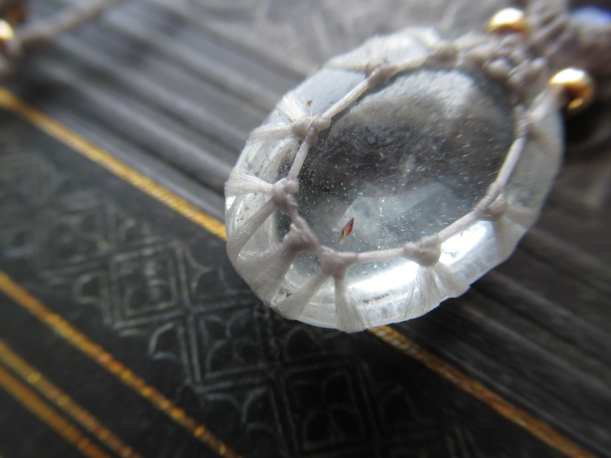 編み糸は0.25mmの極細糸で全体をすっきりしっかりと編み上げています。糸が細いですが強度があり、もったりとせずすっきりとした印象で天然石の色合いや質感をよりお楽しみいただけます。