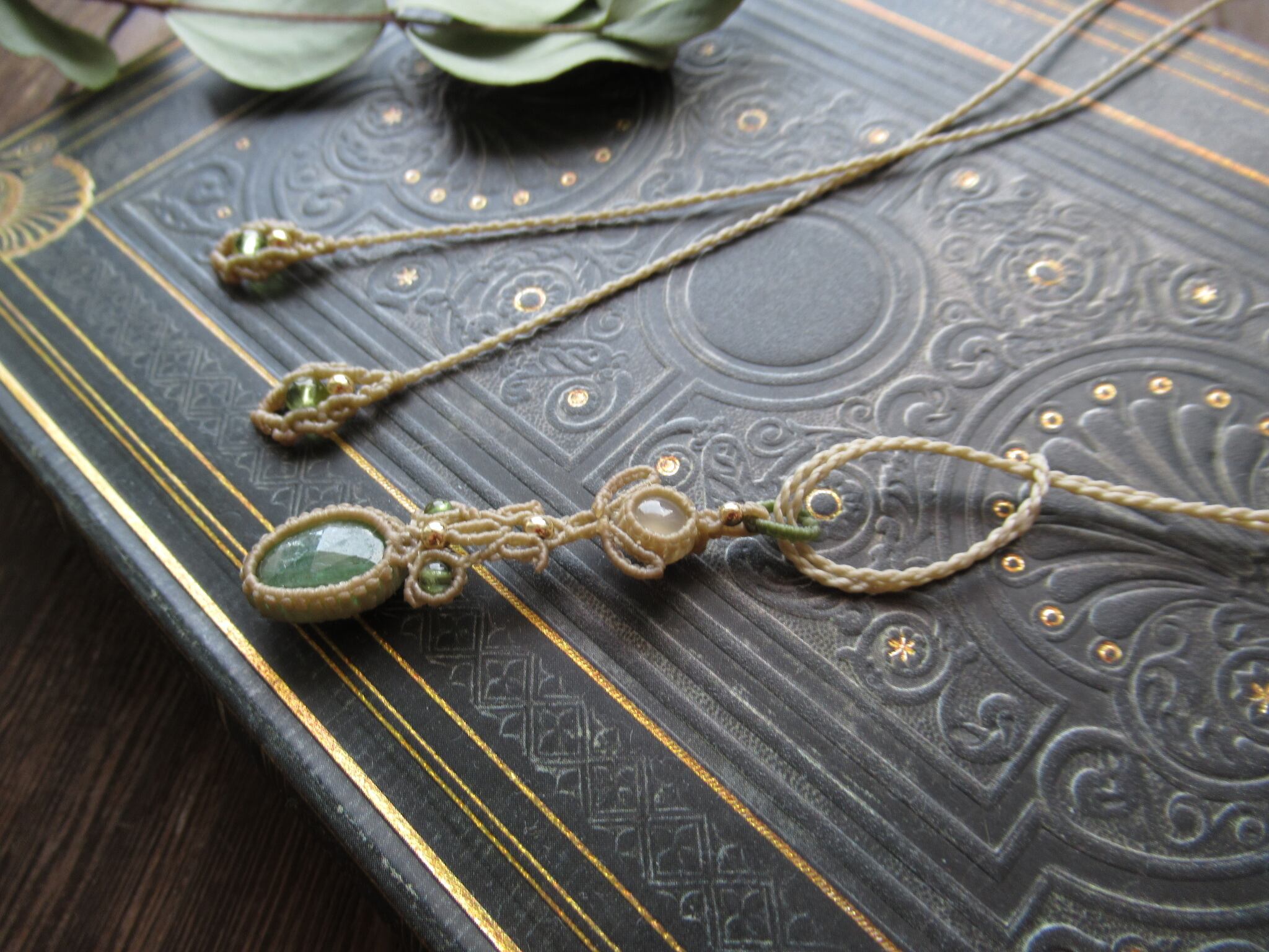 編み糸は0.25mmの極細糸で全体をすっきりしっかりと編み上げています。糸が細いですが強度があり、もったりとせずすっきりとした印象で天然石の色合いや質感をよりお楽しみいただけます。