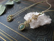 というイメージで、ローズカットが施された、やや濃い目のグリーンのカイヤナイトとホワイトムーンストーンでペンダントを製作しました。