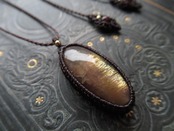 黄昏時の、夕陽の色を写し取ったような美しいサンムーンストーンのルースですっきりとしたシンプルなペンダントをお仕立ていたしました。