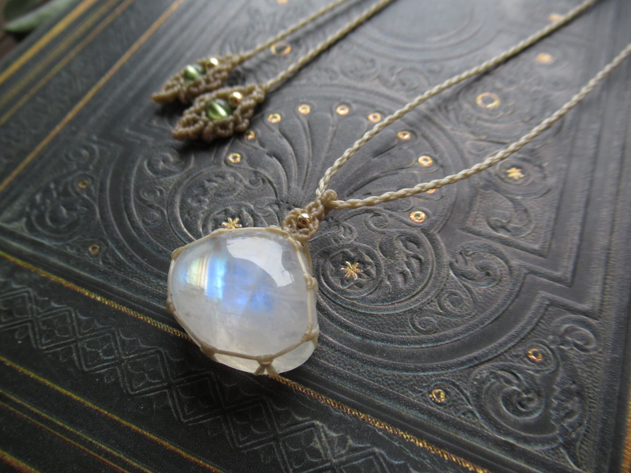 ぷっくりマロン型のレインボームーンストーンのペンダント