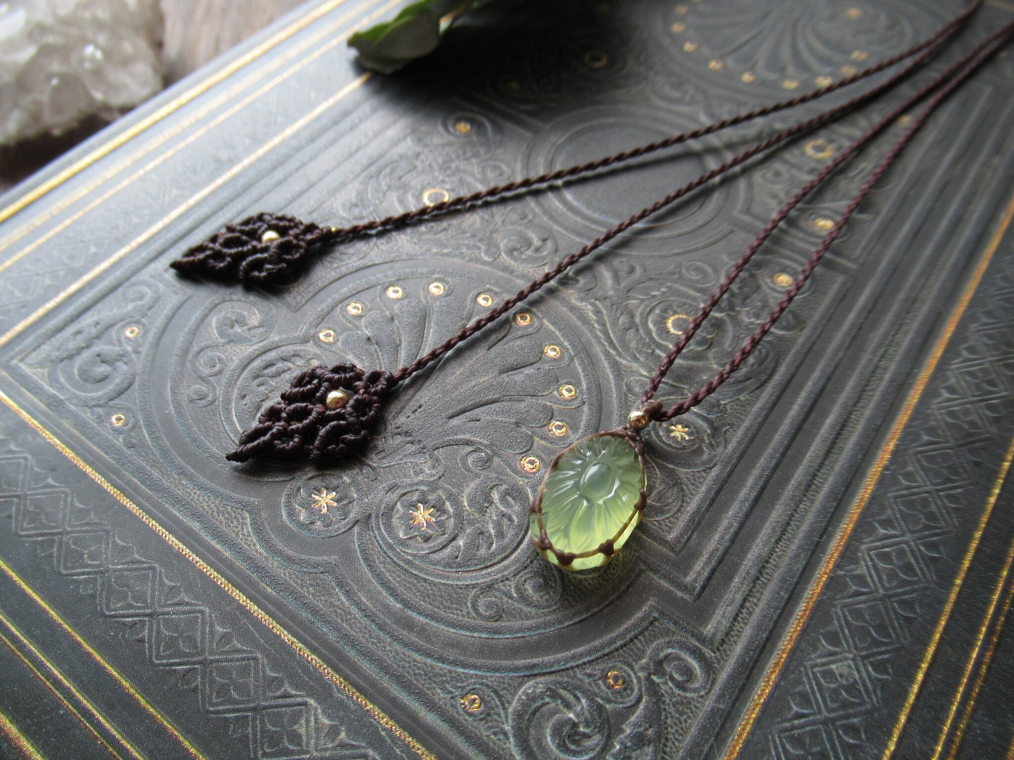 お花模様のプレナイトのペンダント / 0.25mm仕上げ
