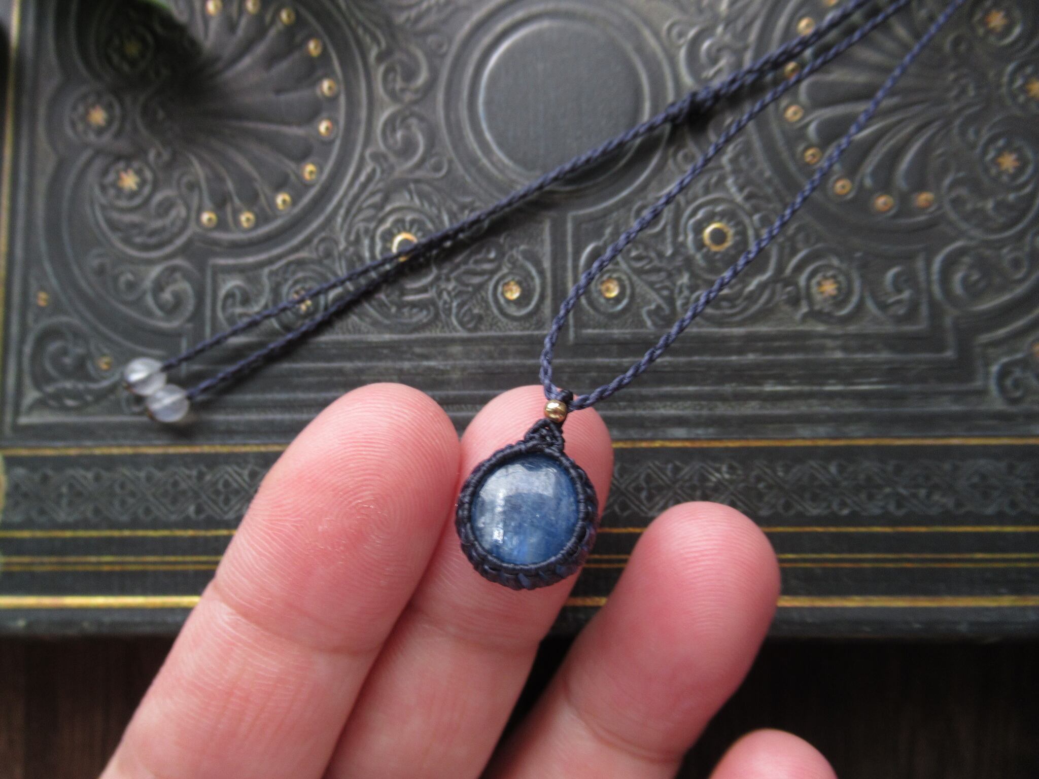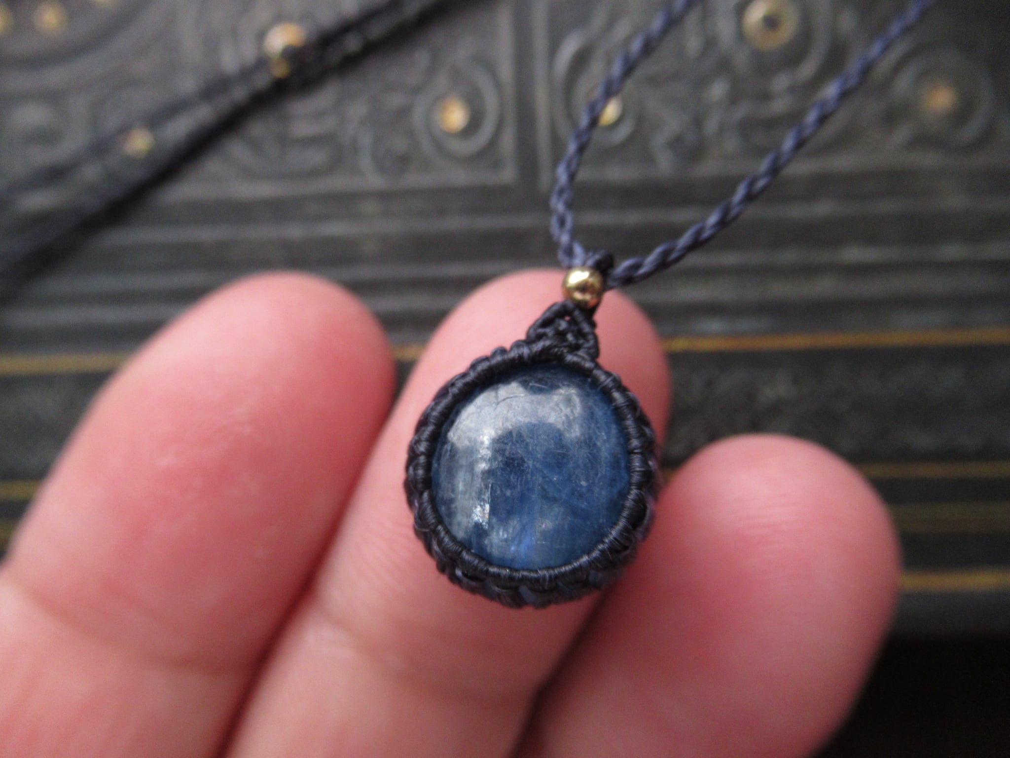 ちいさなブラジル産カイヤナイトのマクラメペンダント /0.25mm仕上げ