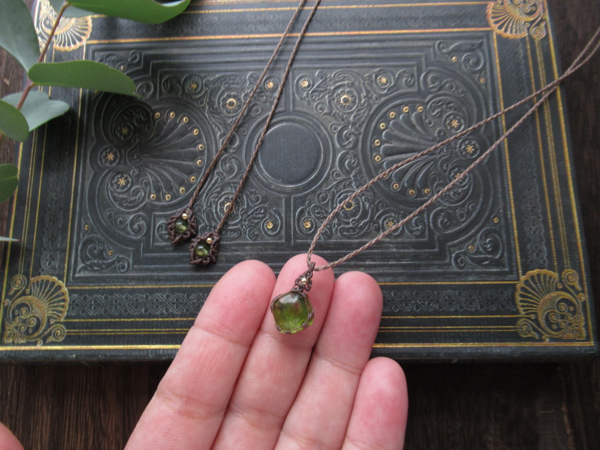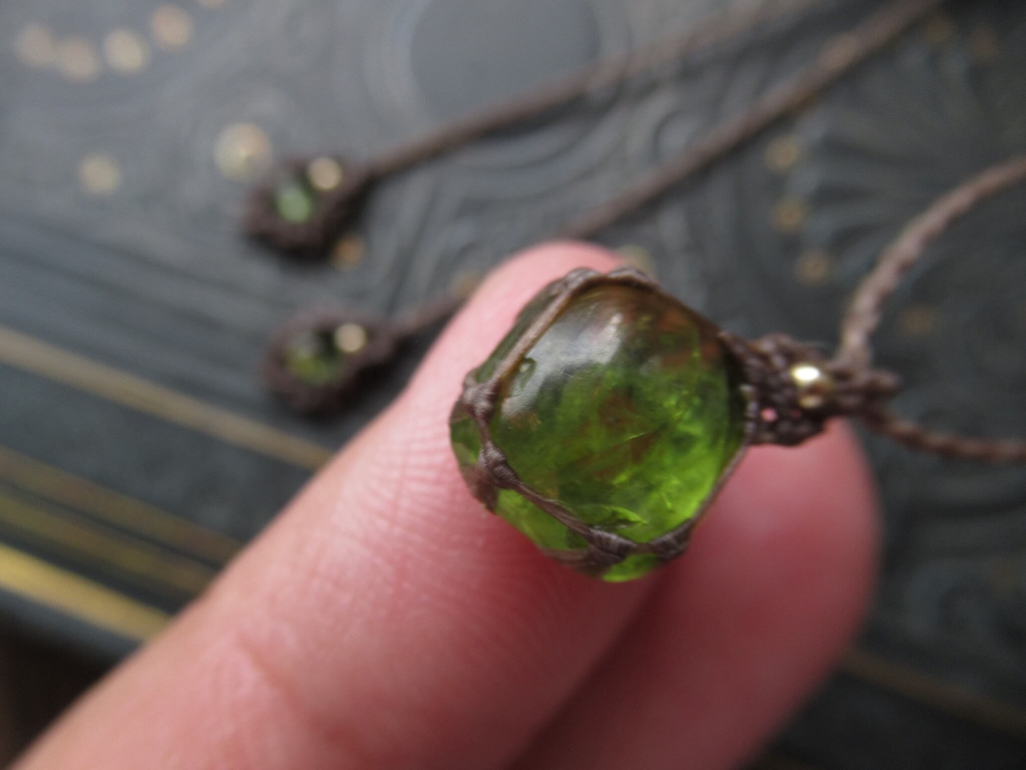 太陽の石あるいはペレの涙 / パキスタン産ペリドットのちいさなペンダント(スクエア) / 0.25㎜仕上げ