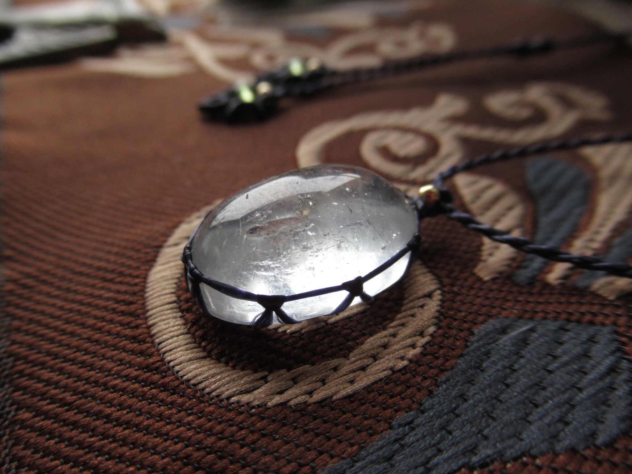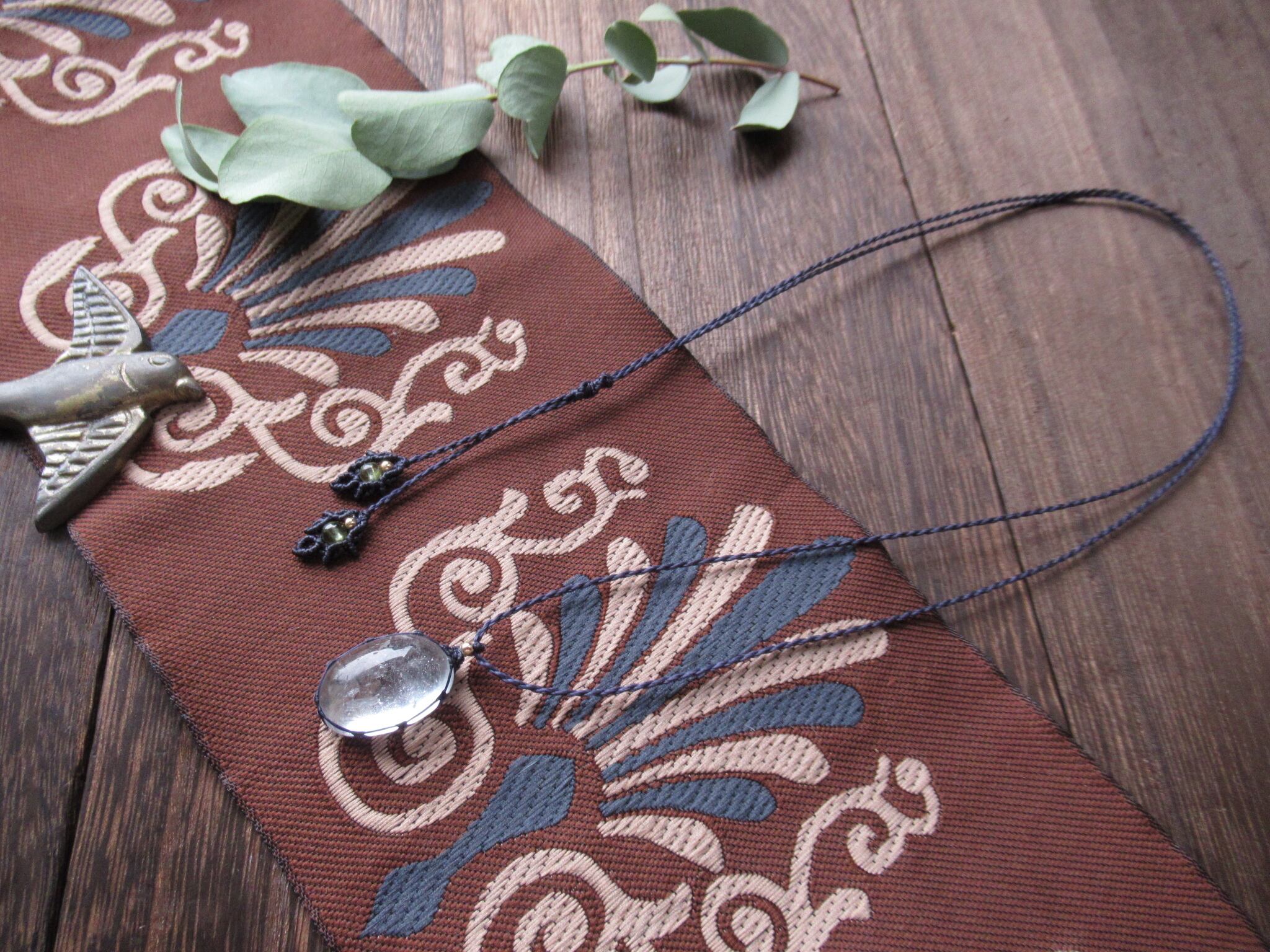 大粒ブラジル産トパーズの氷のしずくのマクラメペンダント /0.25mm仕上げ