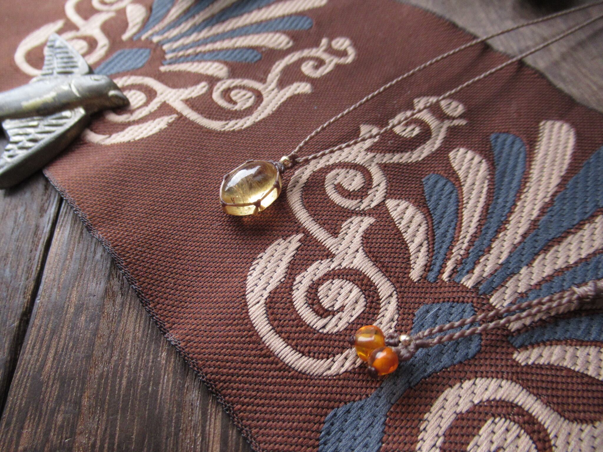 結び石には軽い付け心地で日常使いをたくさんしていただけるように、アンバーのビーズを編み込んでいます。