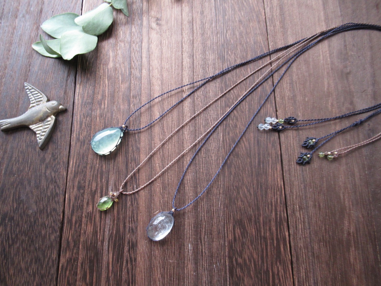 紐に沿って移動させることができ、指でつまんでぐっと動かしていただくと、ペンダントやブレスレットの開口を広げたり狭めたりすることが可能です。