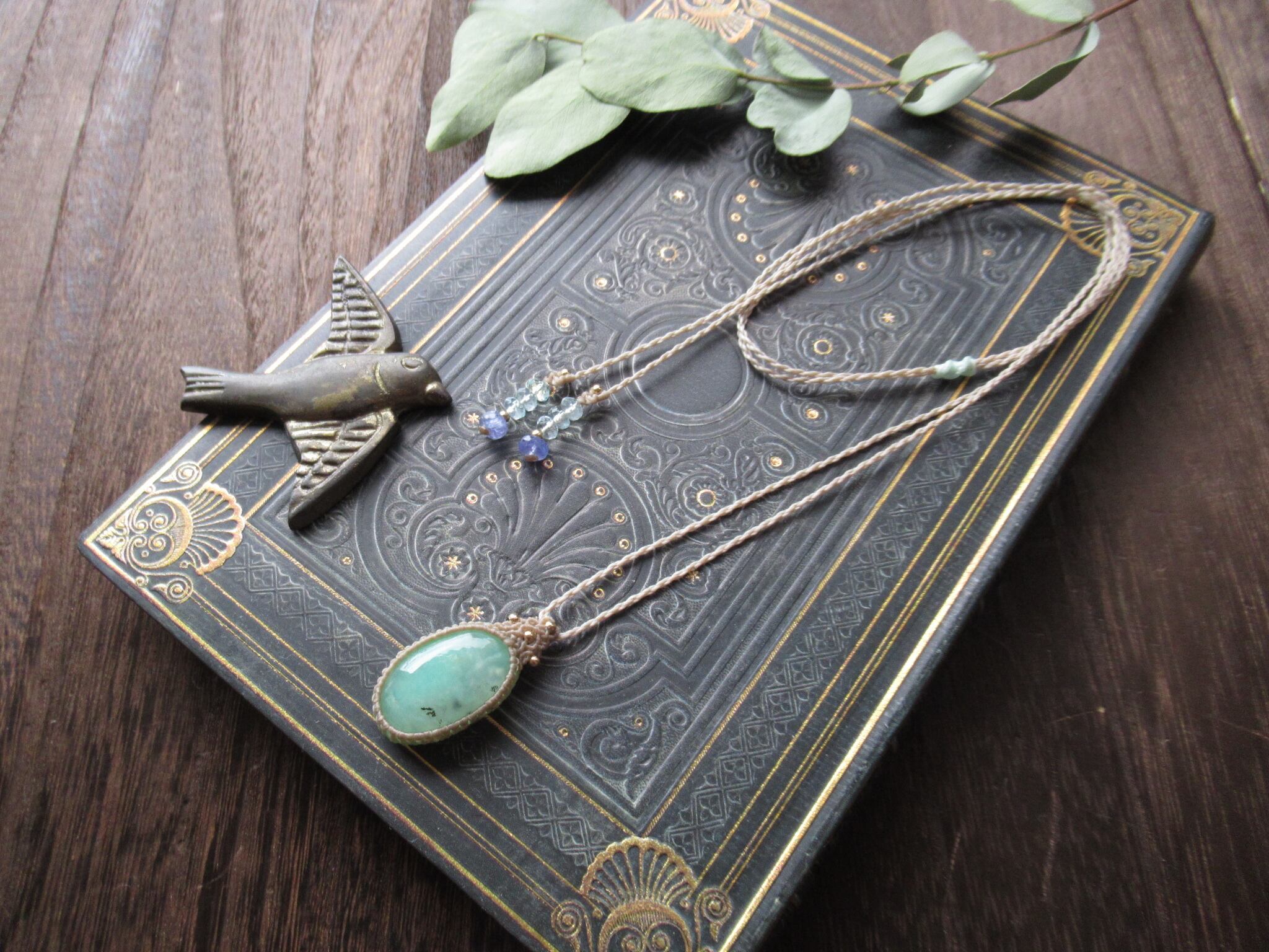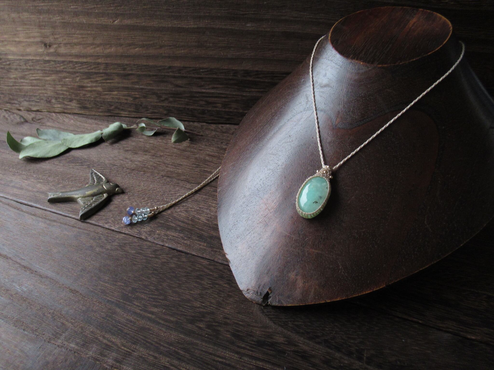 クリソプレーズのマクラメペンダント /0.25mm仕上げ