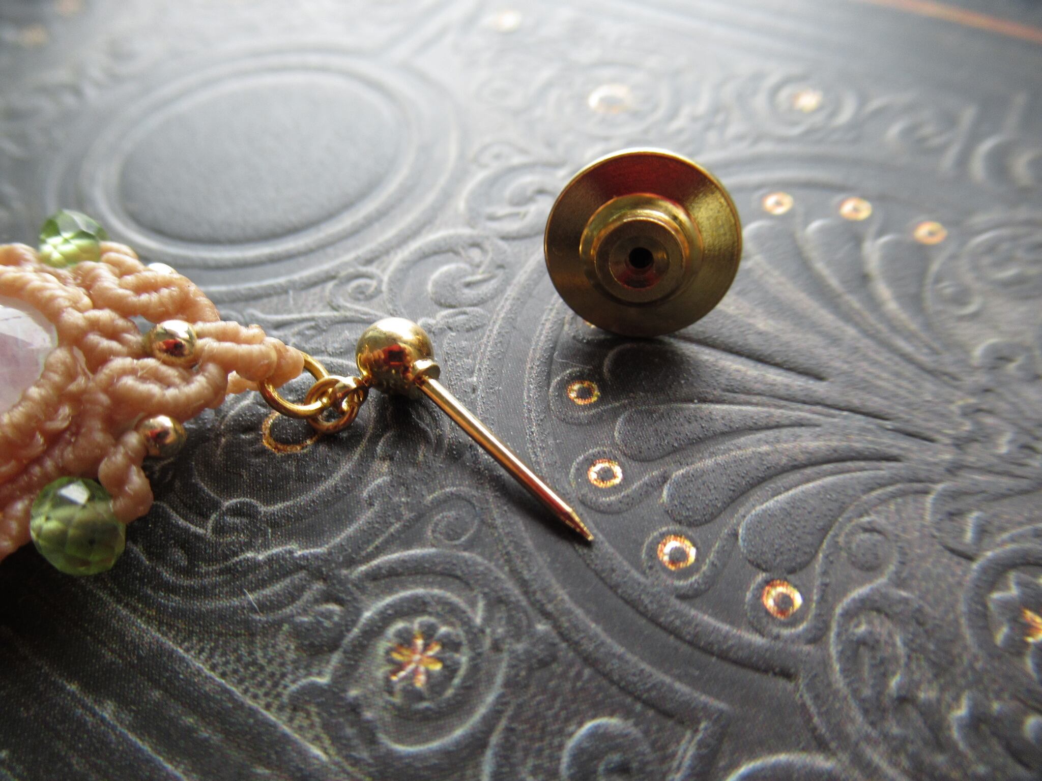 ブローチピンはタックピンで、針穴が一つになります。しっかり留まって落ちにくい国産のブローチピンでございますので、長くお使いいただけましたら幸いでございます。