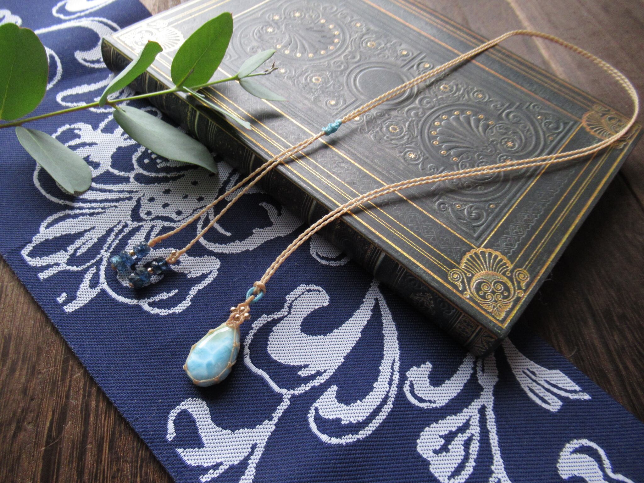 ドミニカ産ラリマー(ブルーペクトライト)のマクラメペンダント /0.25mm仕上げ