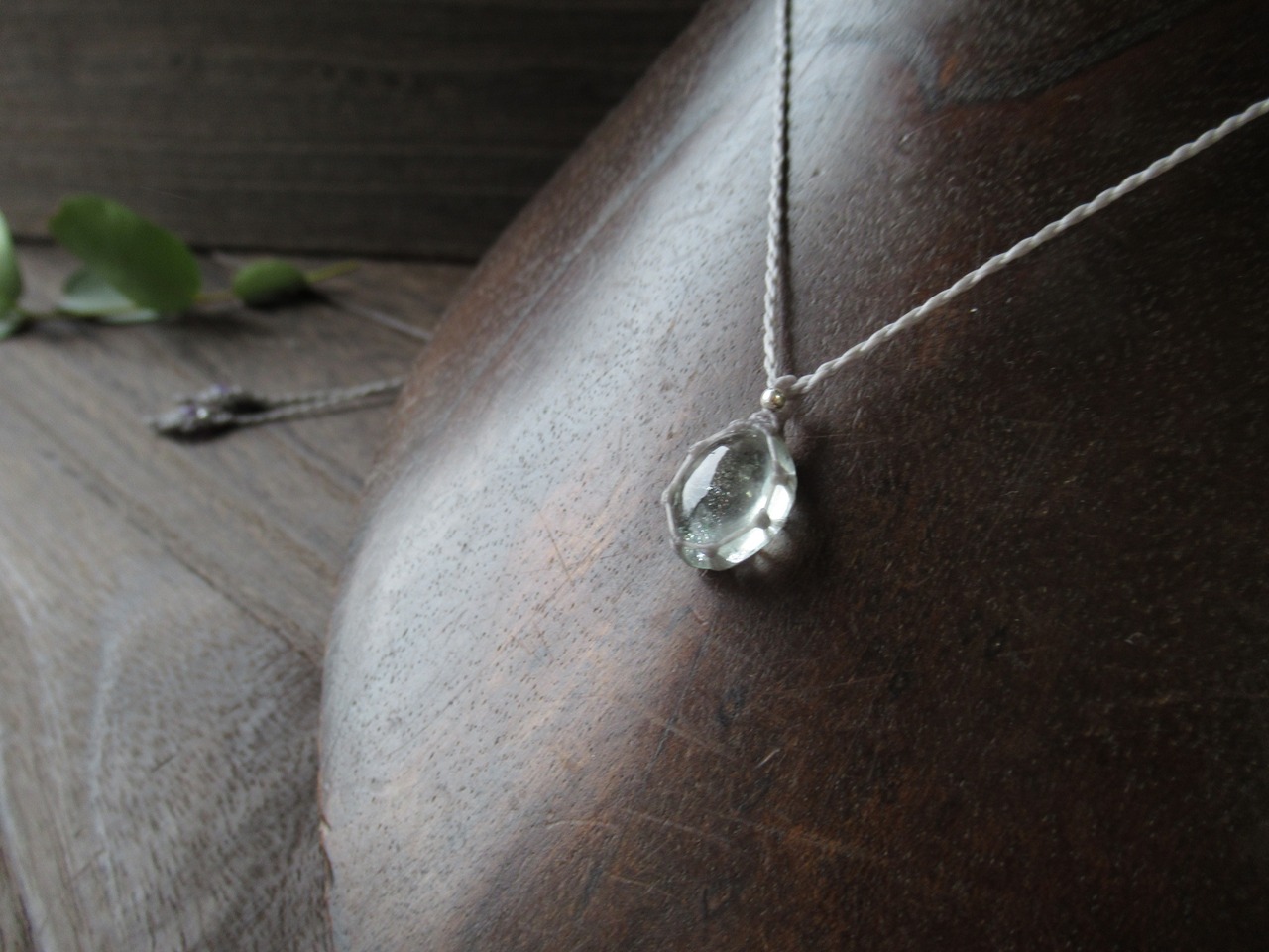 ブラジル産アクアマリンの氷のしずくのマクラメペンダント /0.25mm仕上げ