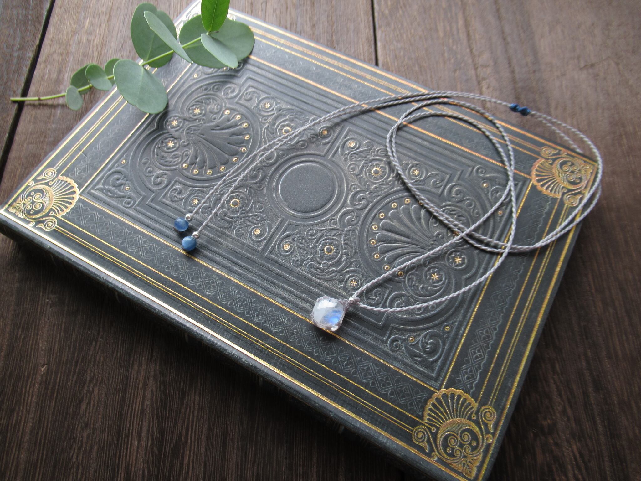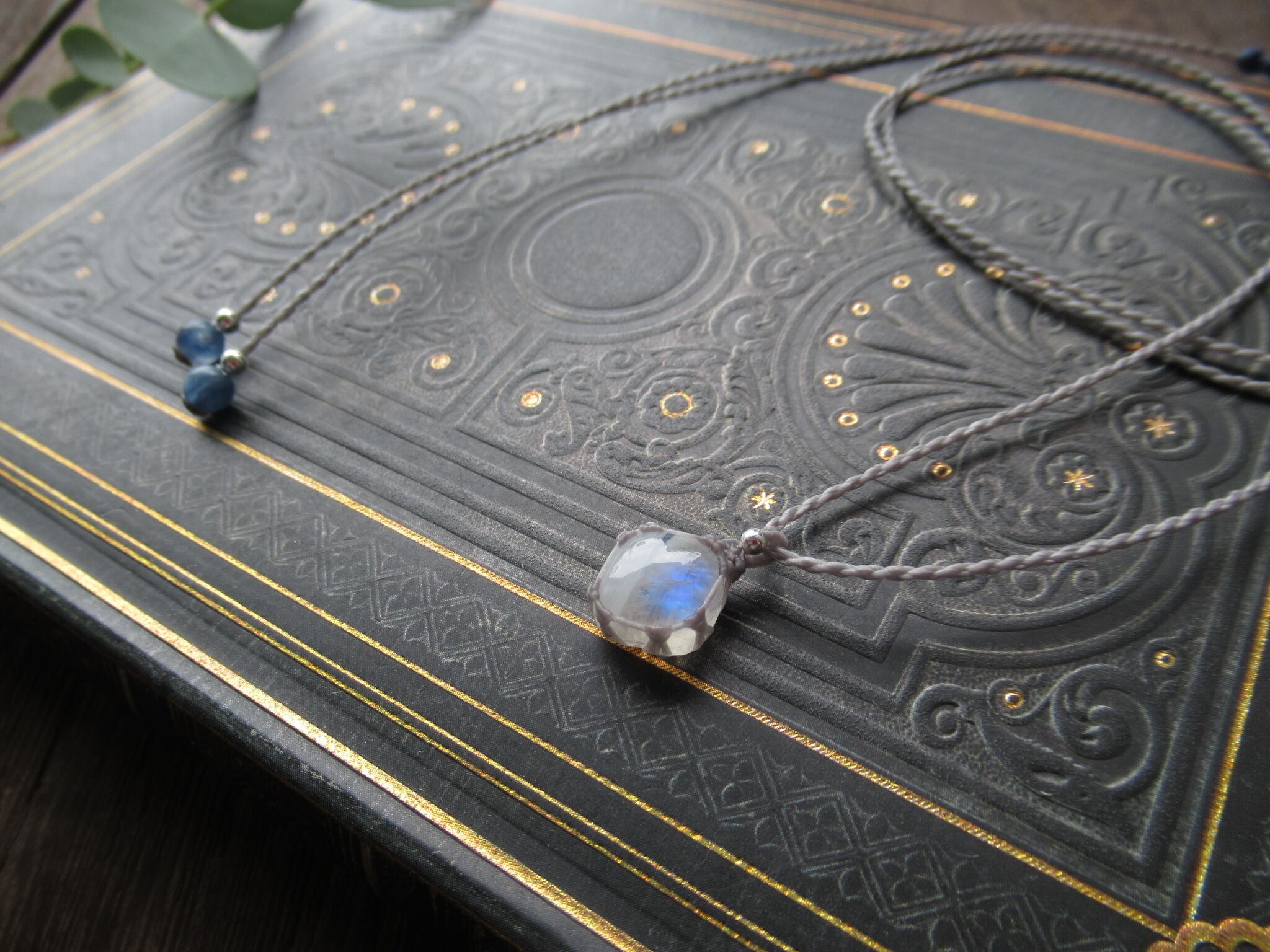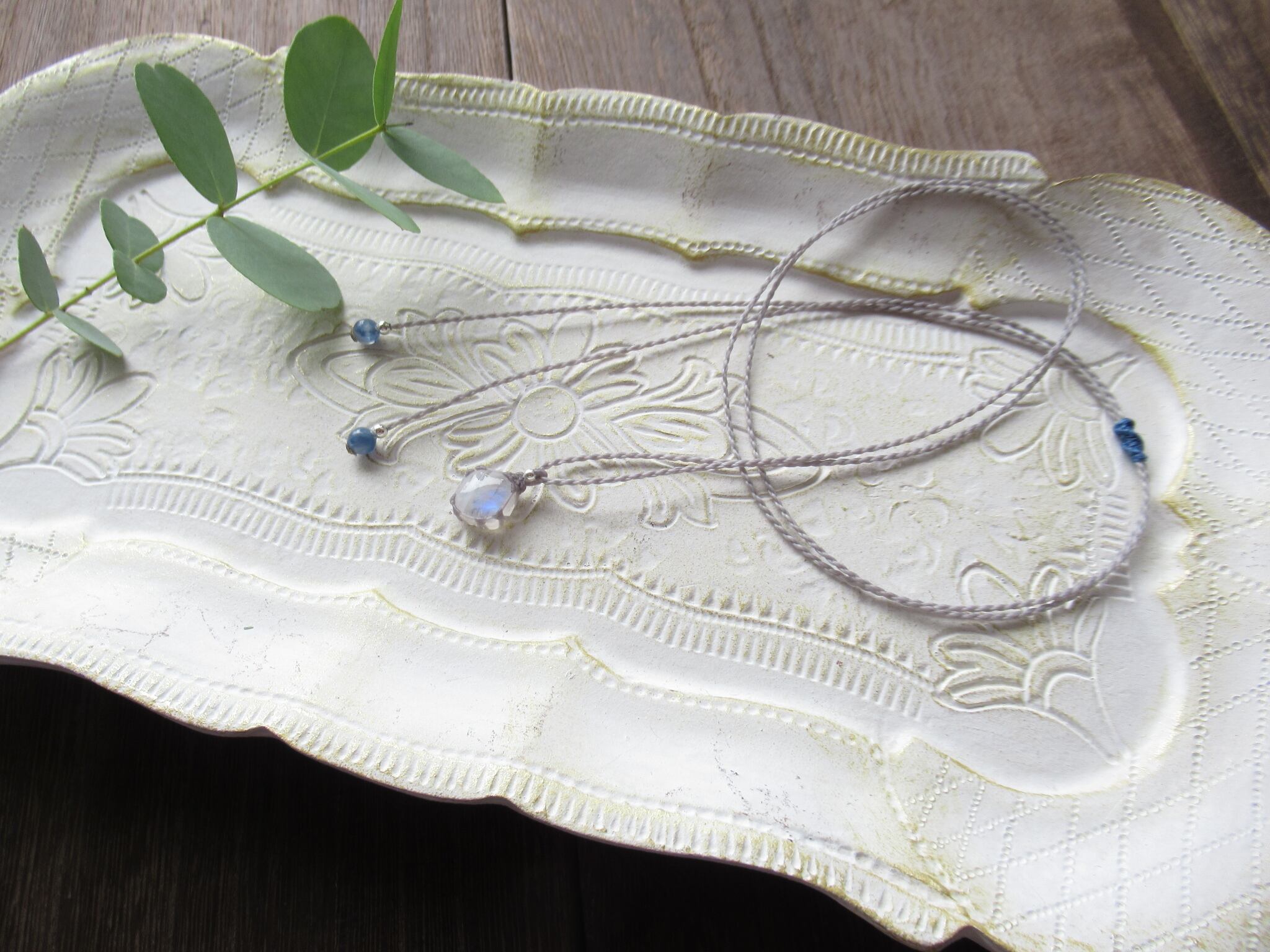 スクエアカットのちいさなブルームーンストーンのマクラメペンダント /0.25mm仕上げ