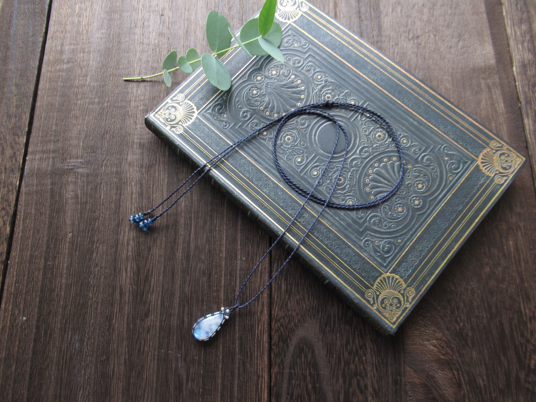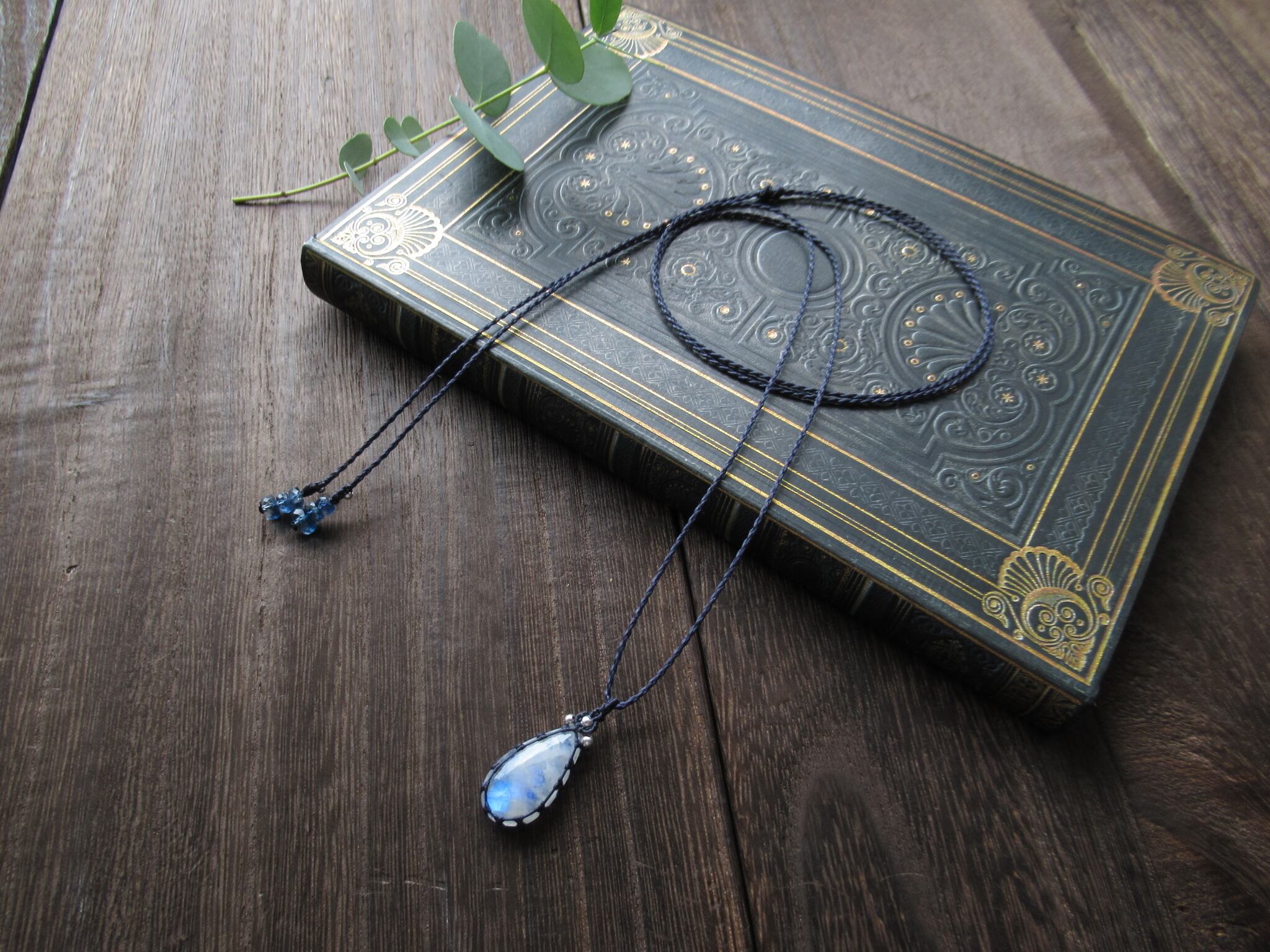 月の雫 ブルームーンストーンのマクラメペンダント /0.25mm仕上げ